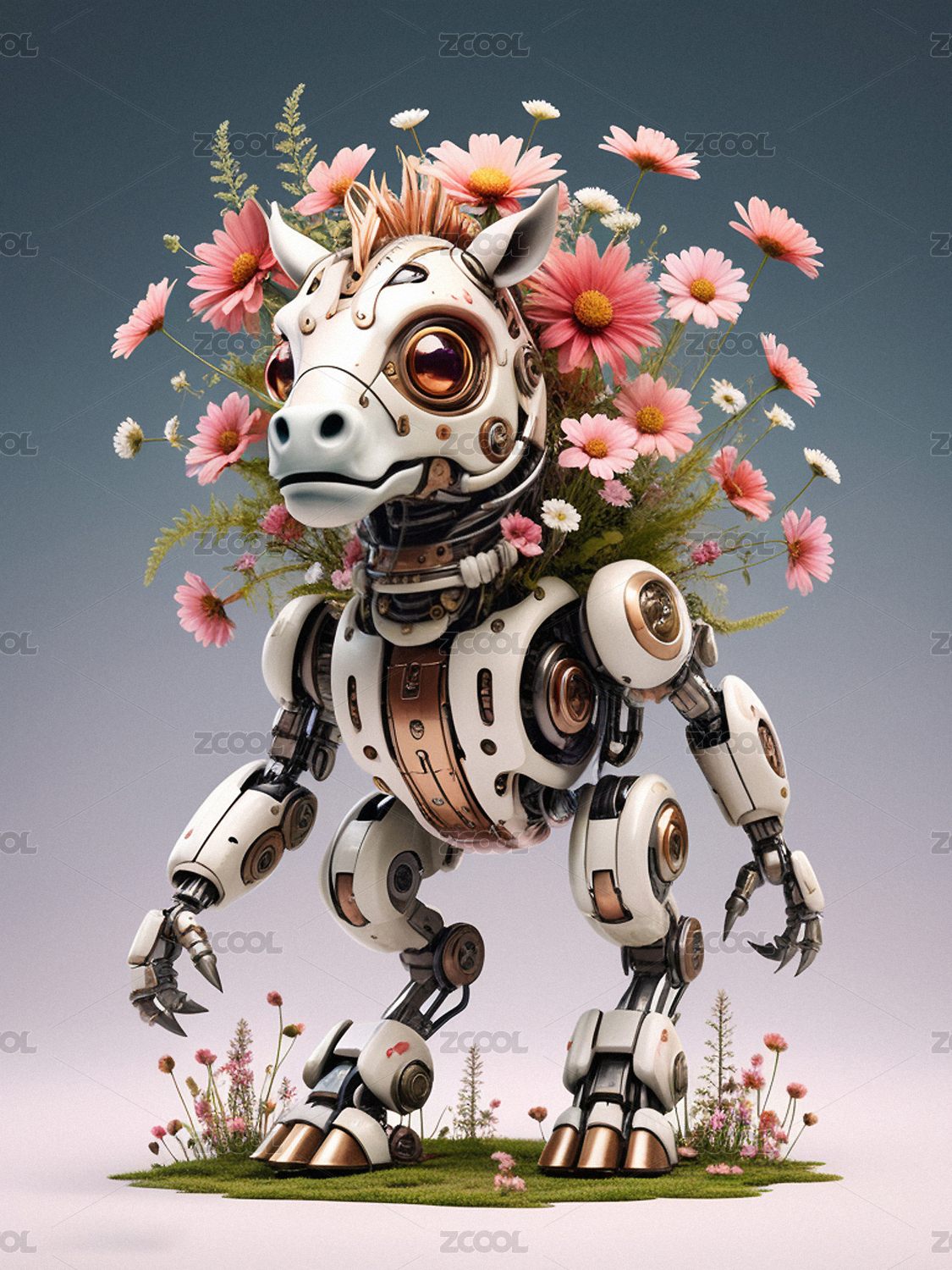 AI绘画,创意,十二生肖,野花,机甲,龙