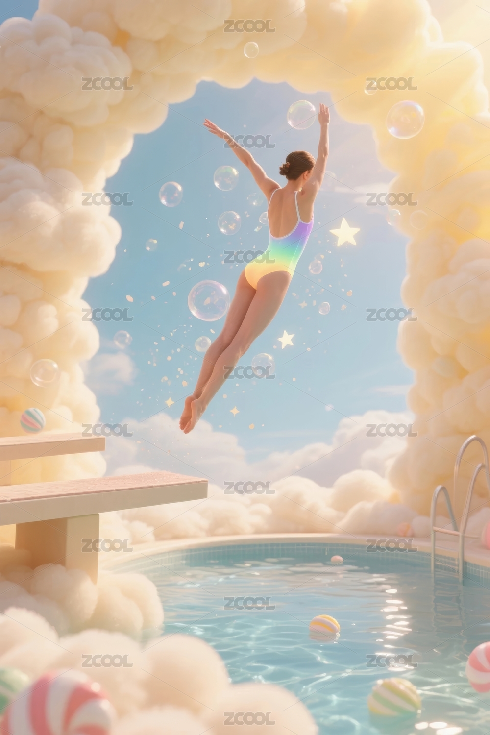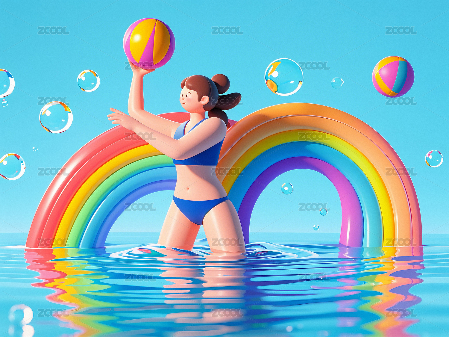 全息箔,彩色,炫彩,彩虹,镜面,AIGC202401,运动,水球,美女,水