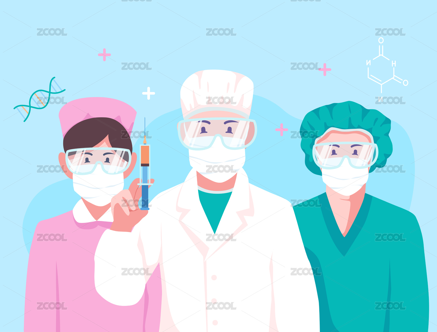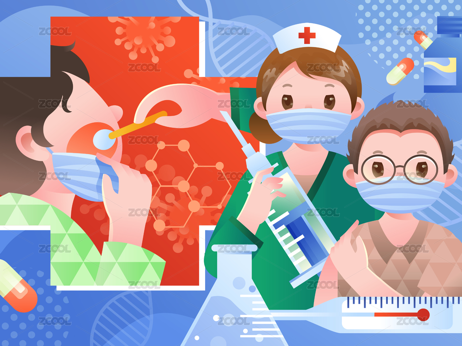 矢量,防疫,肺炎,口罩,医疗,抗疫,核酸检测,打针,疫苗,护士