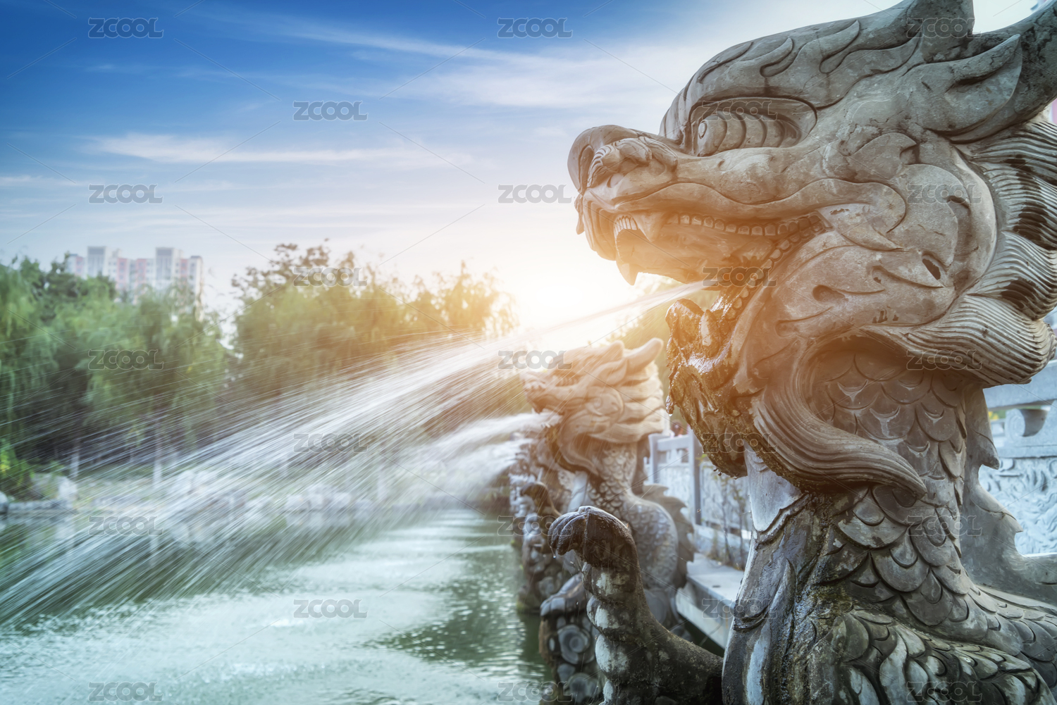 中国,古代,园林,龙首,喷泉,景观,古建筑,亚洲,龙,雕塑