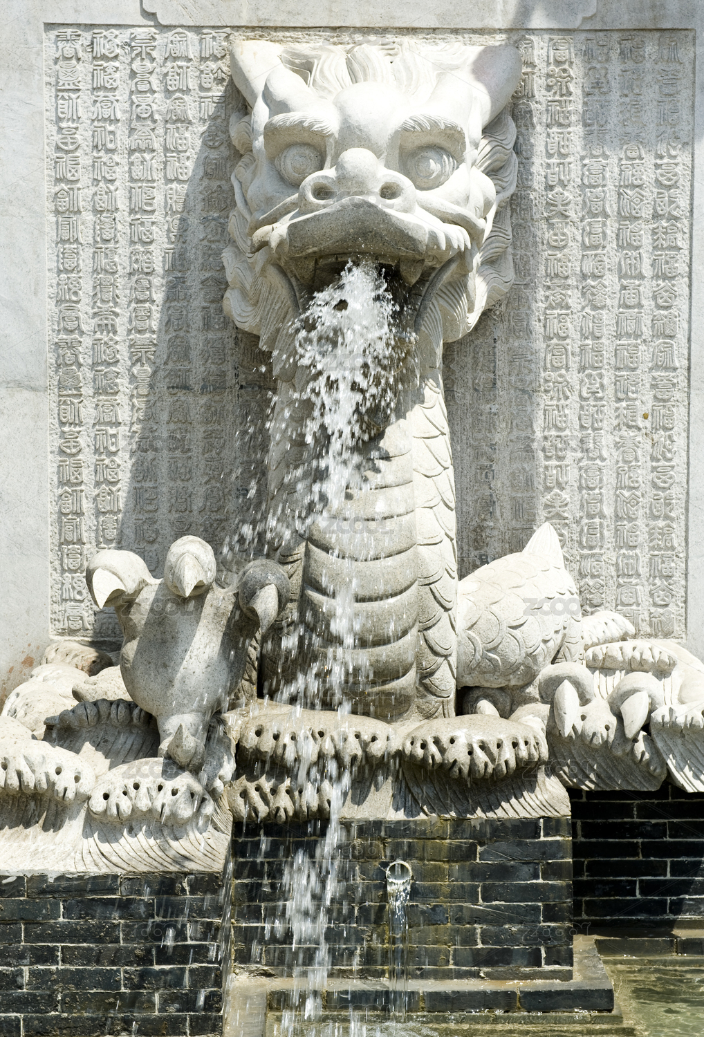中国山西省平遥古城文庙内的喷水龙头雕塑