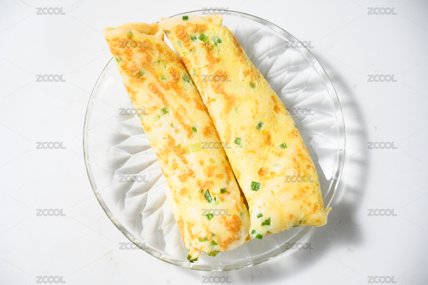 桌面上的盘子里的美味可口的煎鸡蛋饼