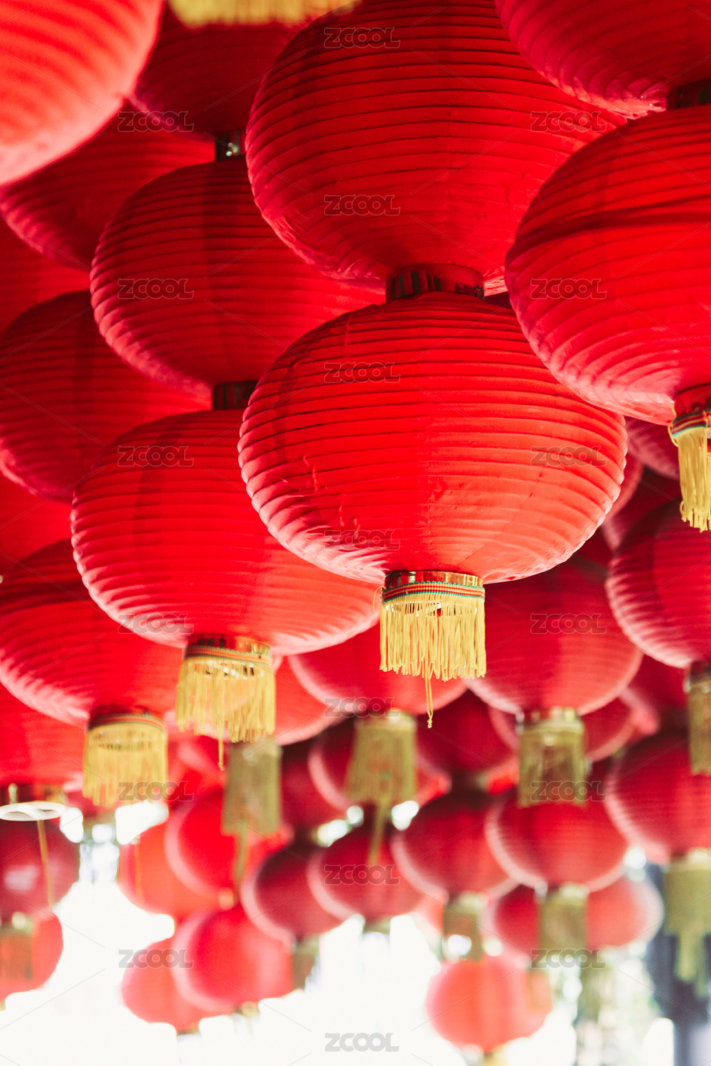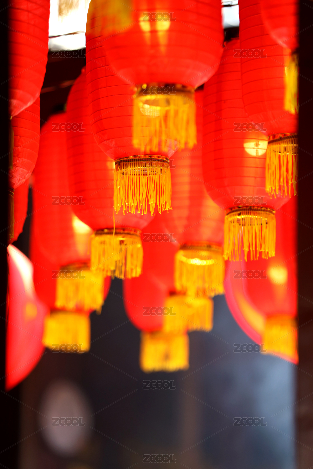 春节寺庙里的红灯笼