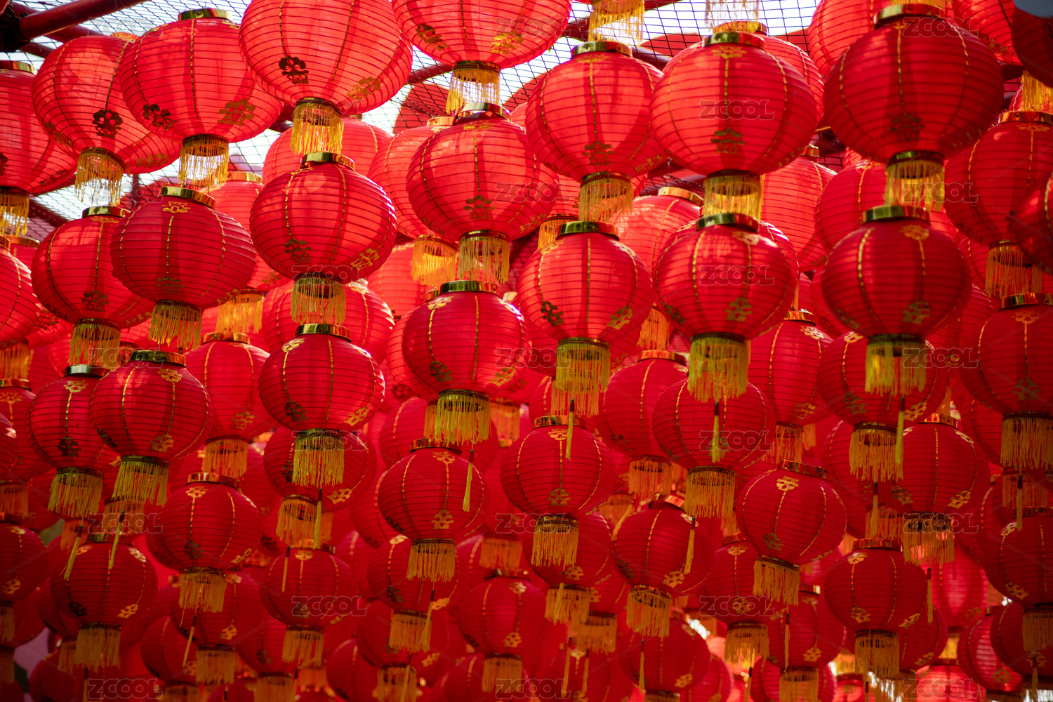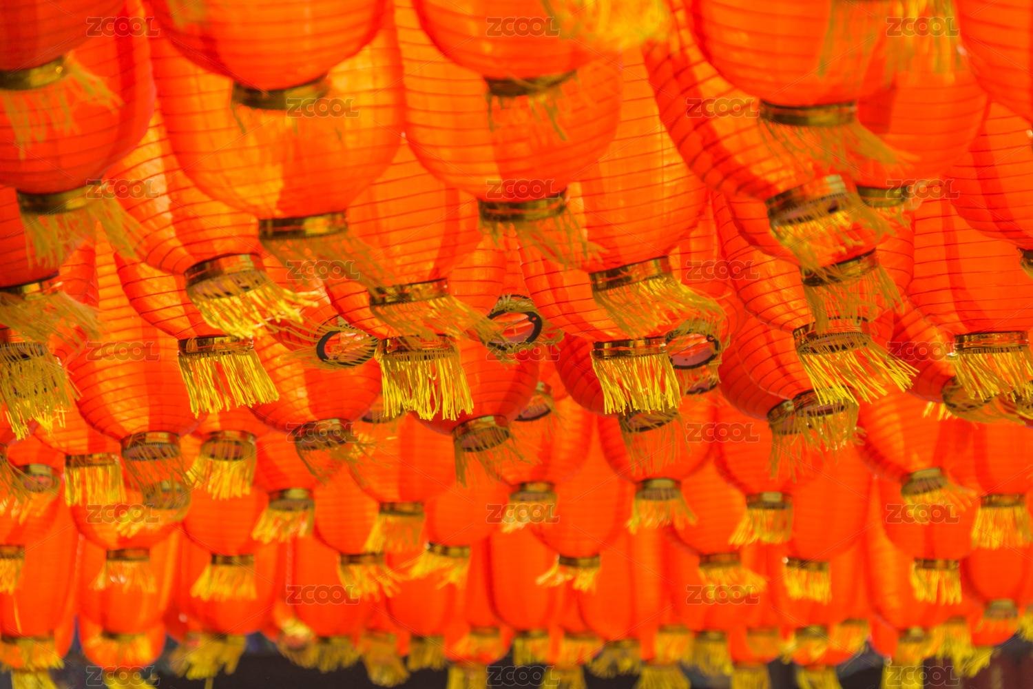 元宵灯会上挂着的一片红灯笼