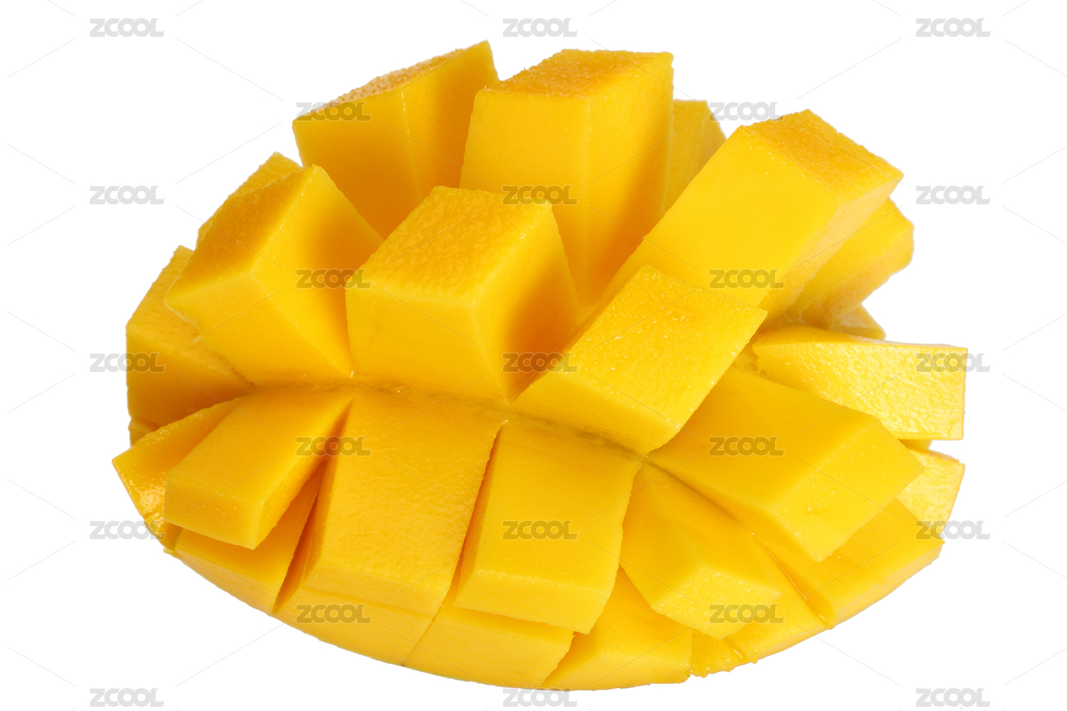 切开的夏天热带水果芒果果肉的白底图