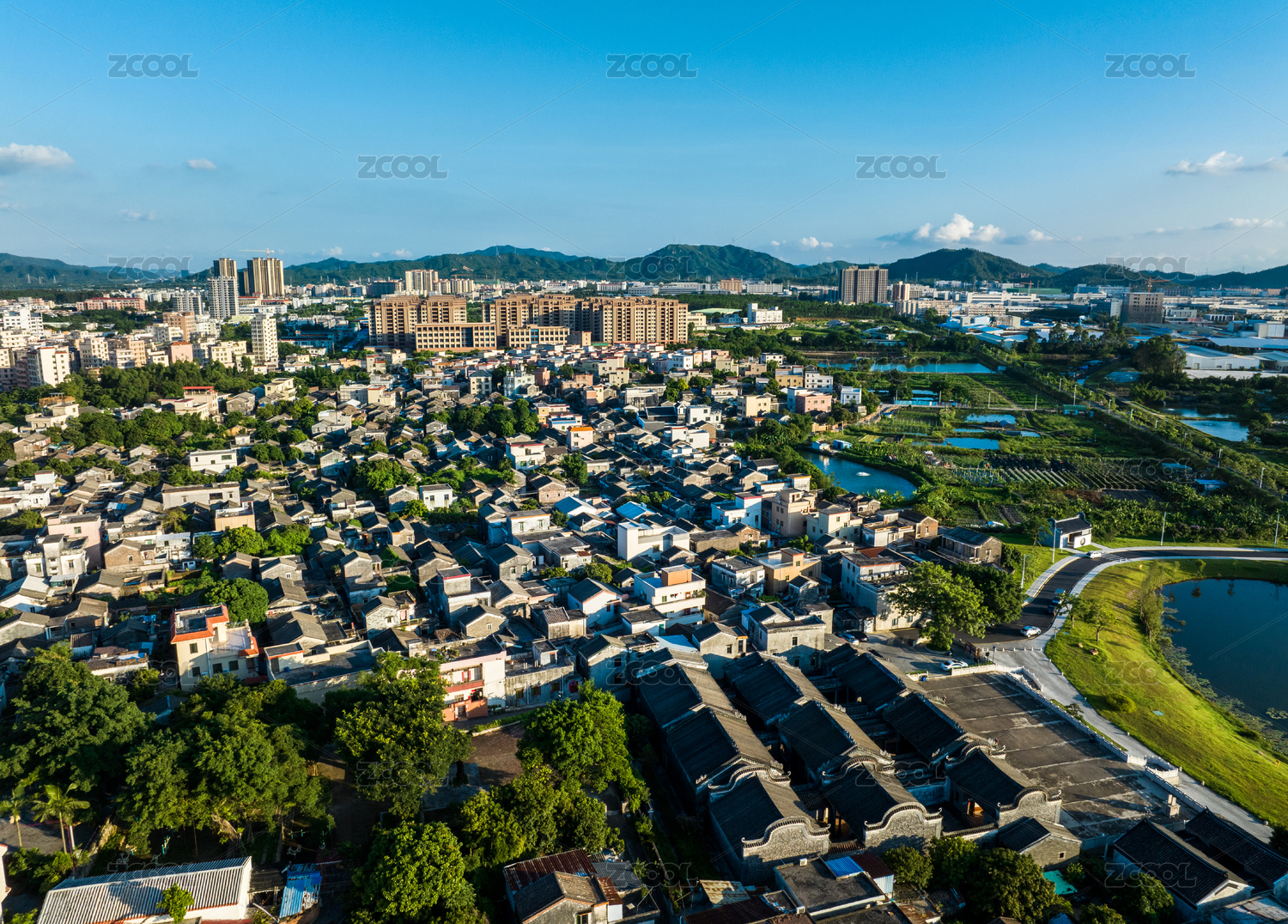 航拍中国广东省广州市黄埔区庙头村村落民居