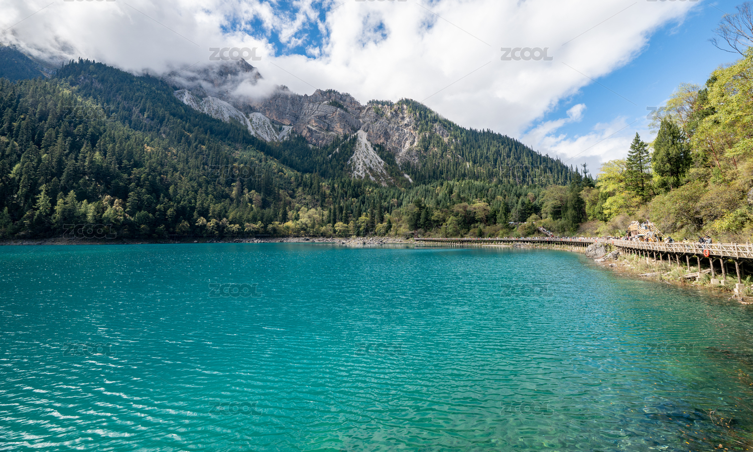 九寨沟,自然保护区,晴天,山水,自然风光,绿色,蓝天,栈道