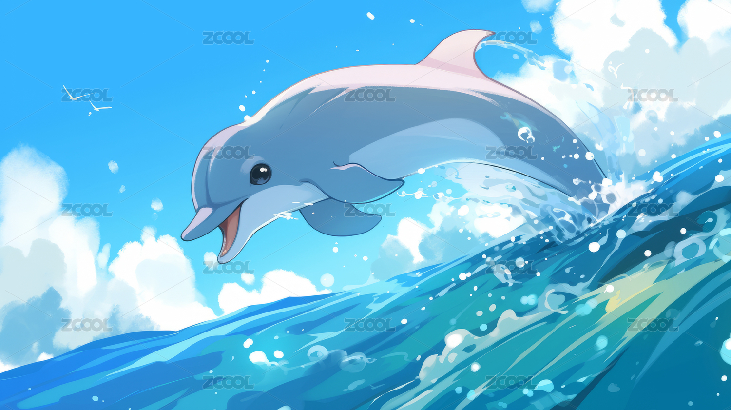 卡通可爱海豚治愈系插画