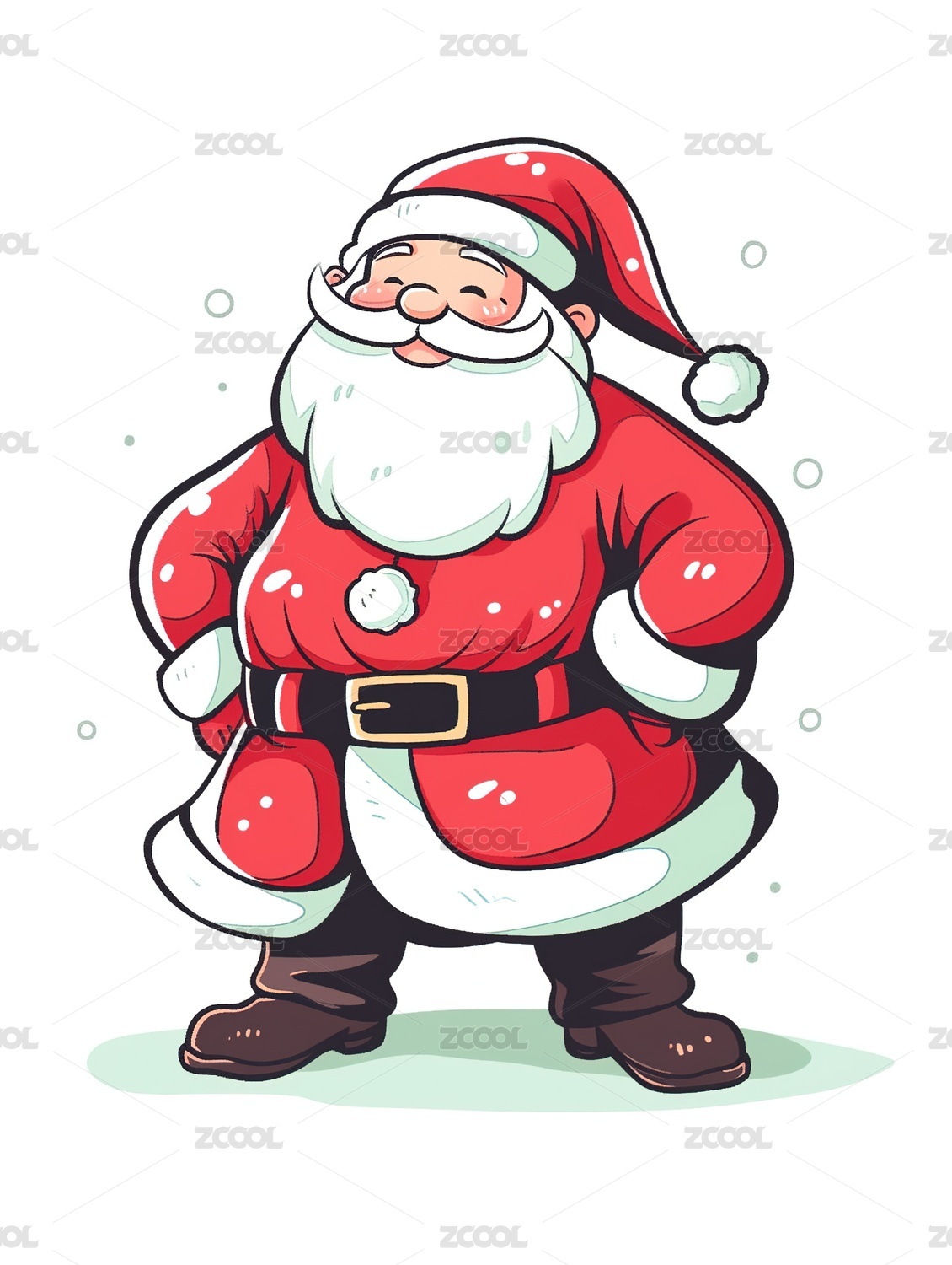 卡通圣诞风格圣诞老人T恤装饰图案插画