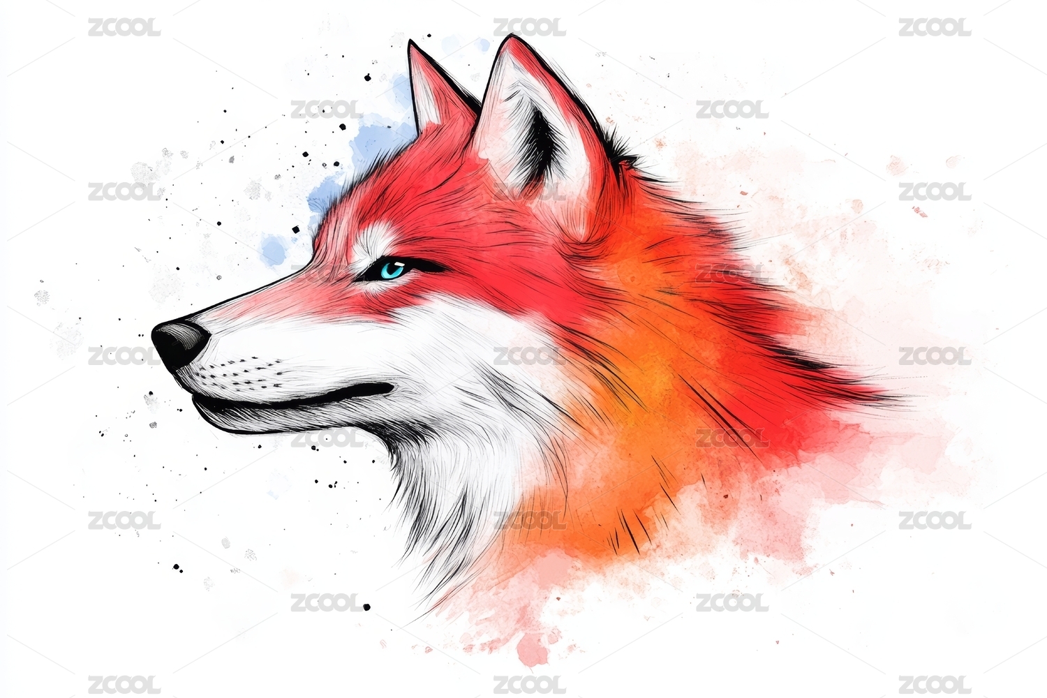 狐狸,头部,侧面,写意,线条,火焰,抽象,动物,野生动物,毛发