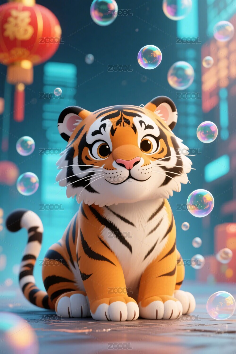 春节,喜庆,生肖,卡通,3D,IP,虎,生肖虎,放鞭炮,爆竹