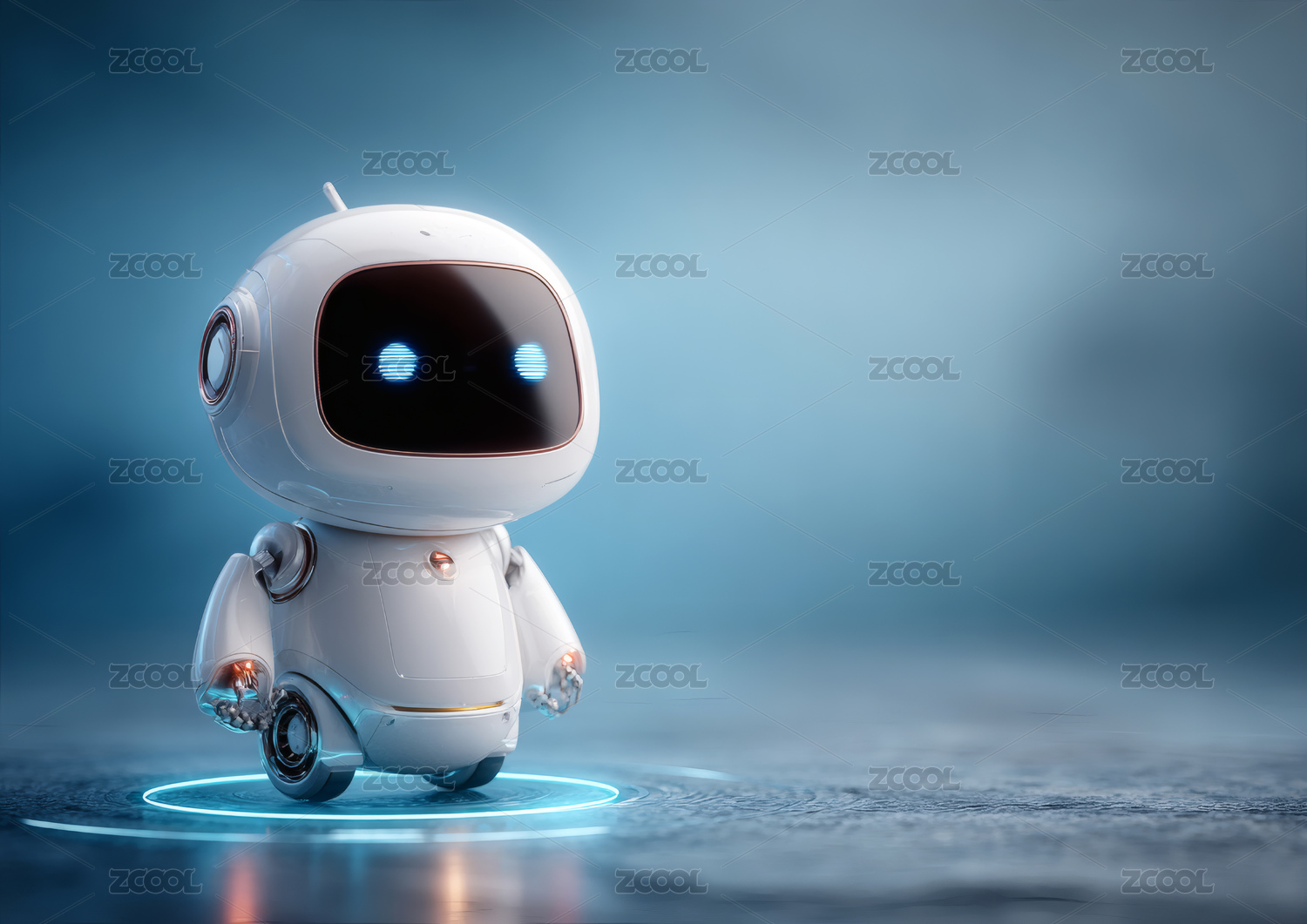 可爱机器人站立在蓝色背景前