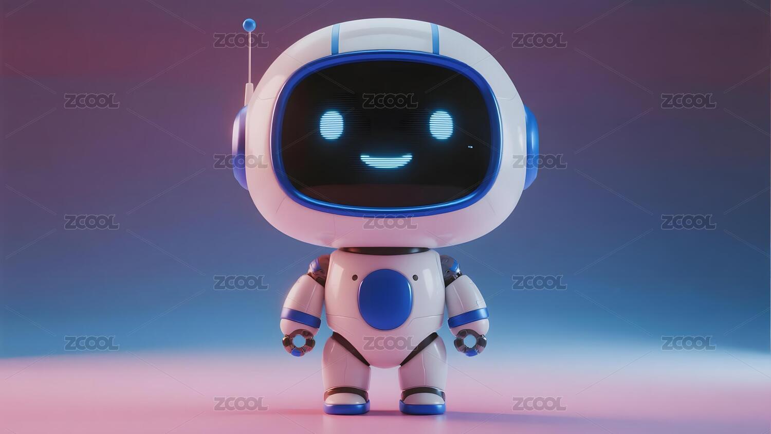 蓝色背景下的可爱机器人形象