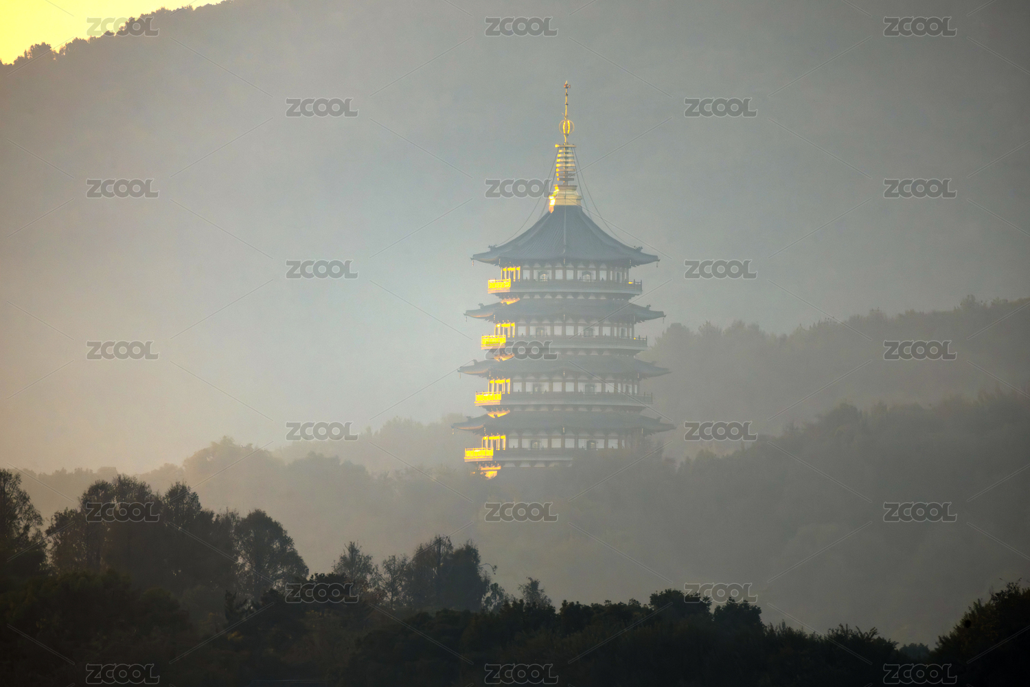 浙江,杭州,西湖,夜景,黄昏,风光,风景,景观,塔,古建筑