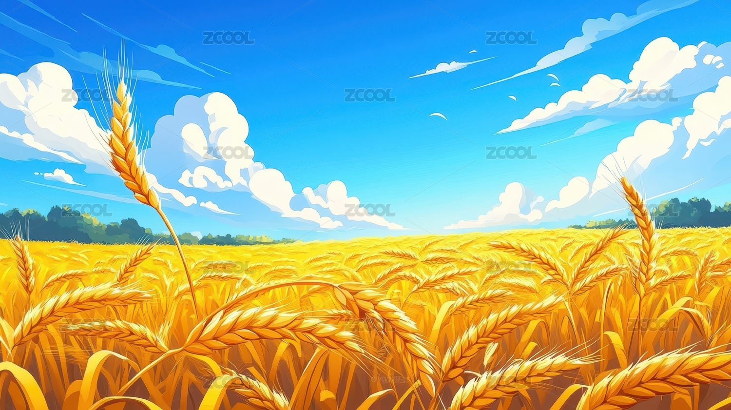 金黄色的麦田插画