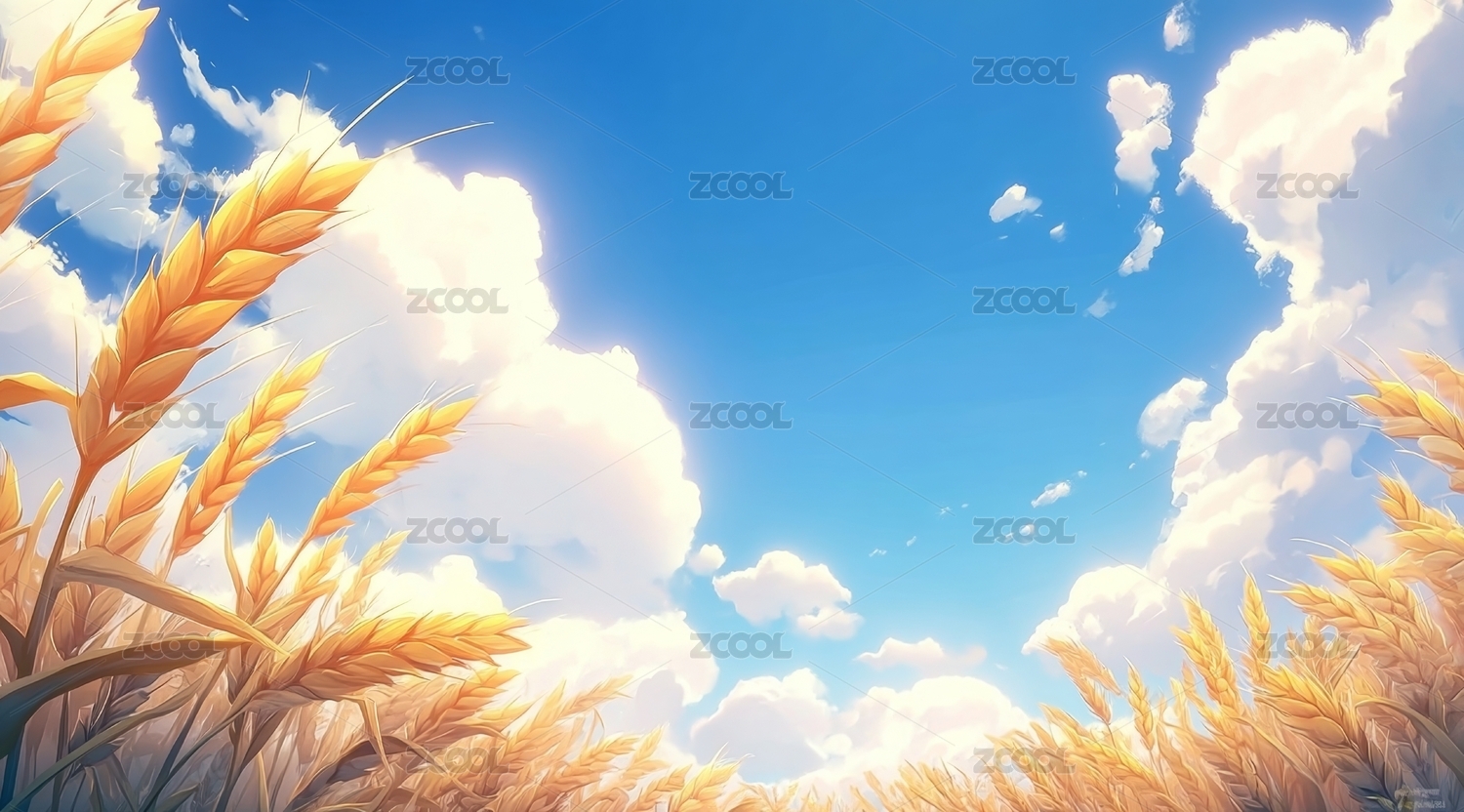金黄麦田与蓝天白云