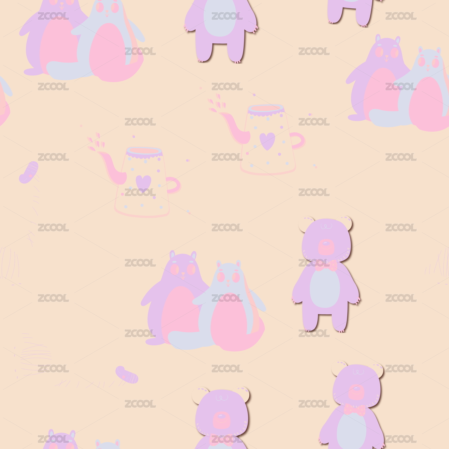 插画,动物,无缝,卡通,可爱,拼接,重复,图形,图案,位图