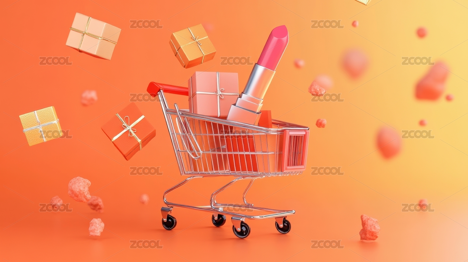 3D渲染电商促销题材的金币购物车