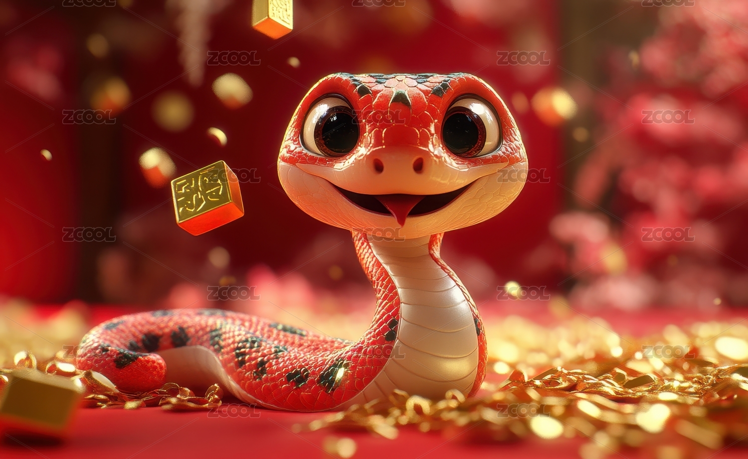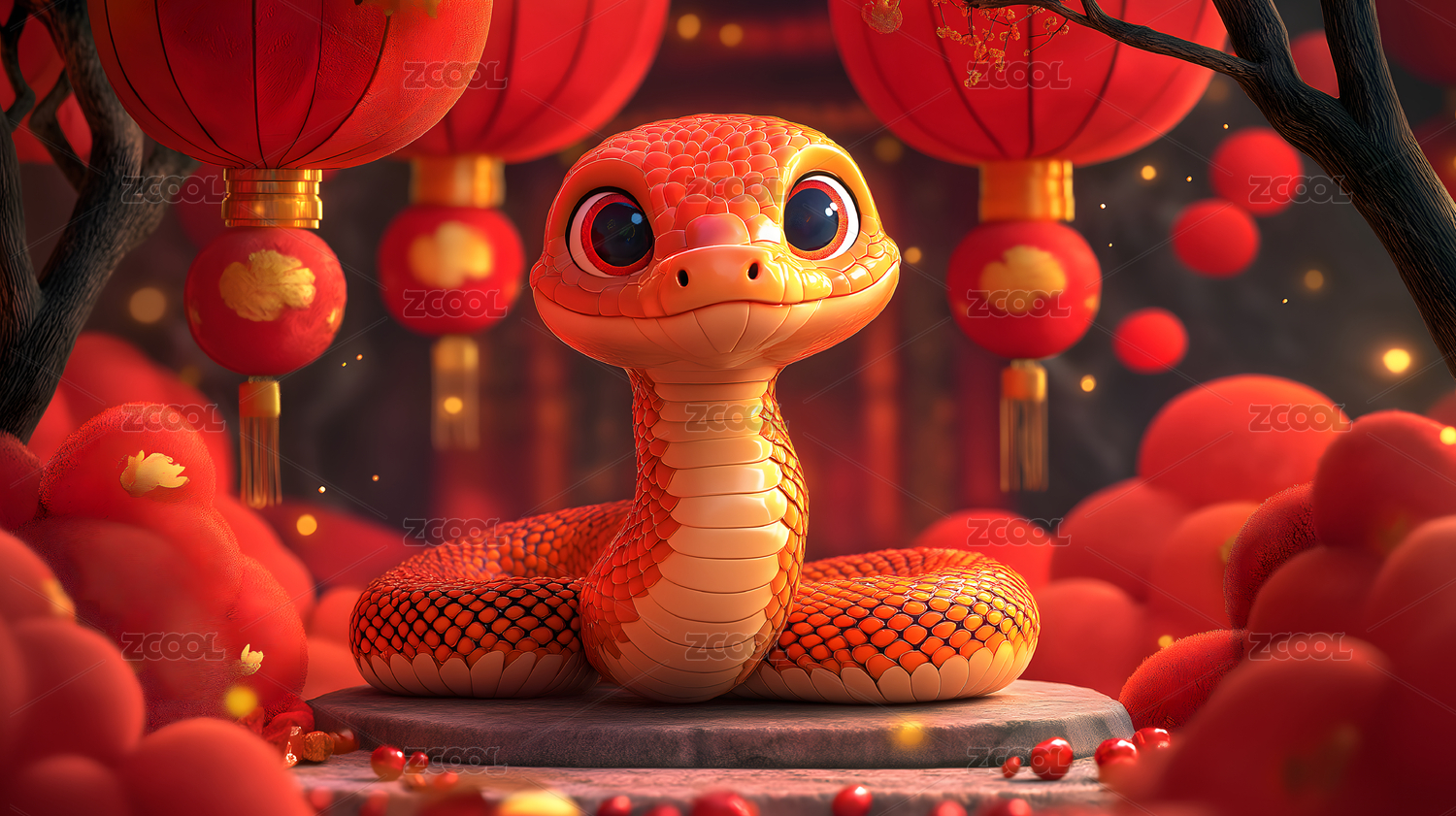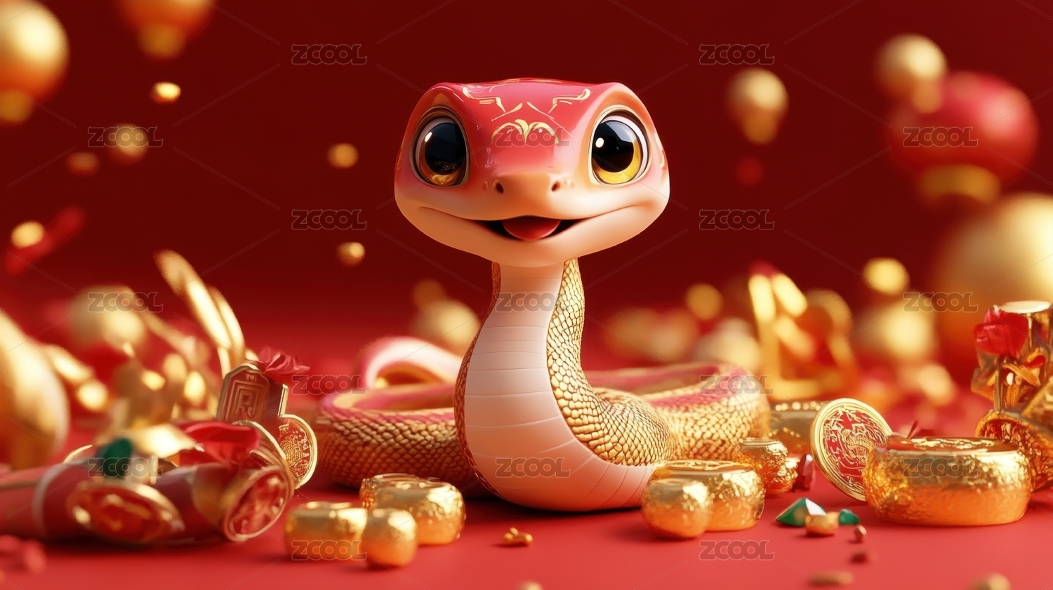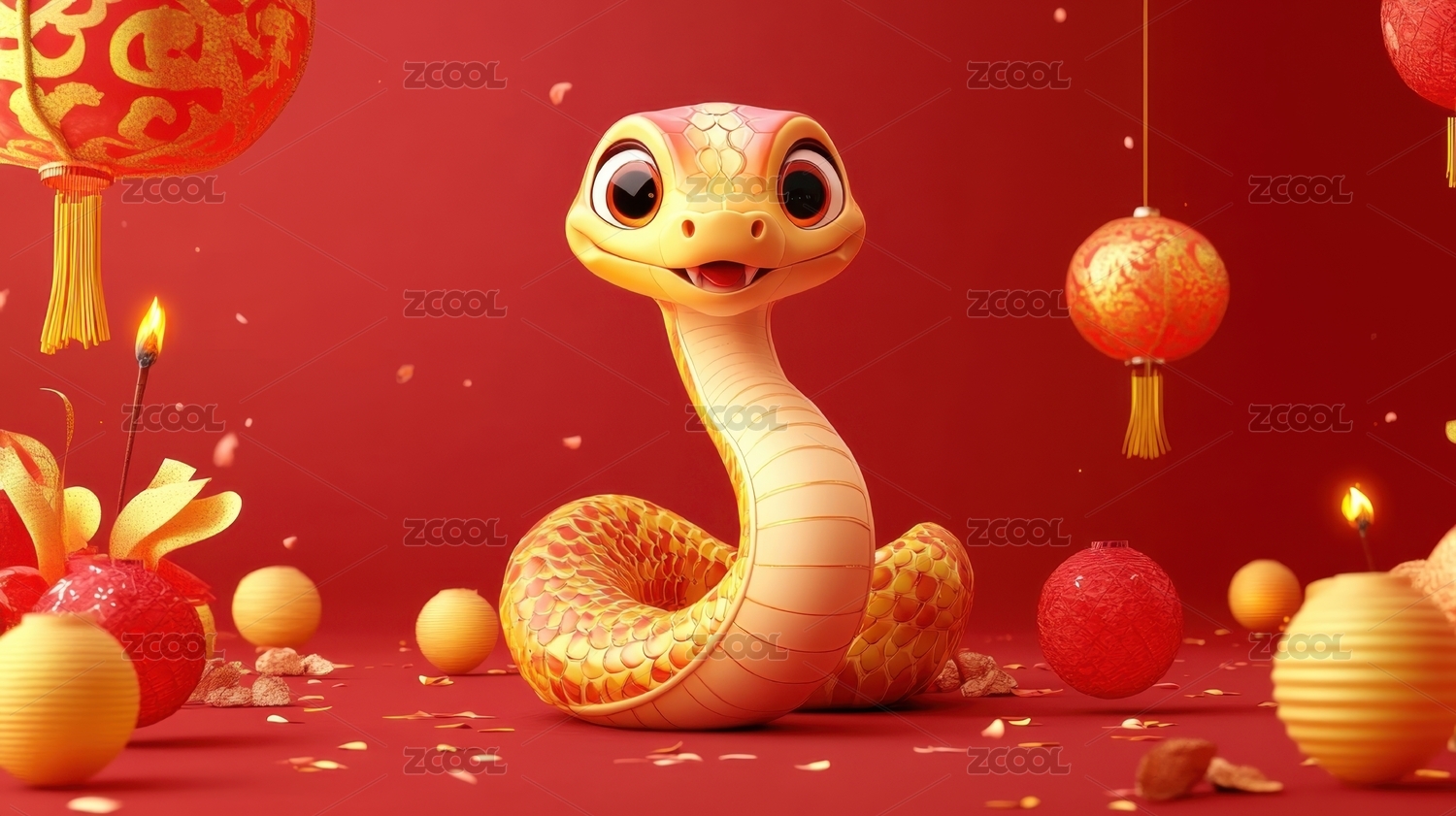 新年卡通3d蛇年灯笼金币喜庆场景形象