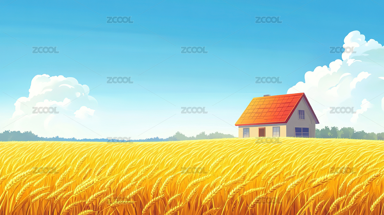 金黄麦田里的白房子