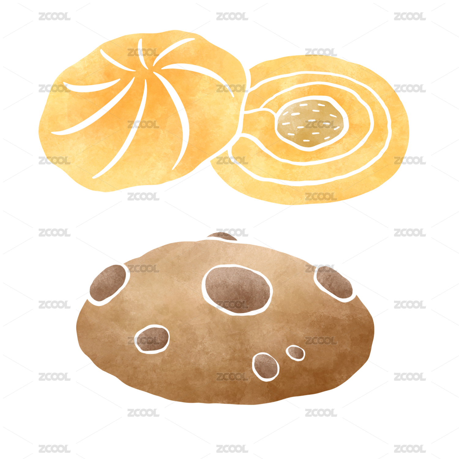 扁平设计水彩肌理饼干曲奇元素图