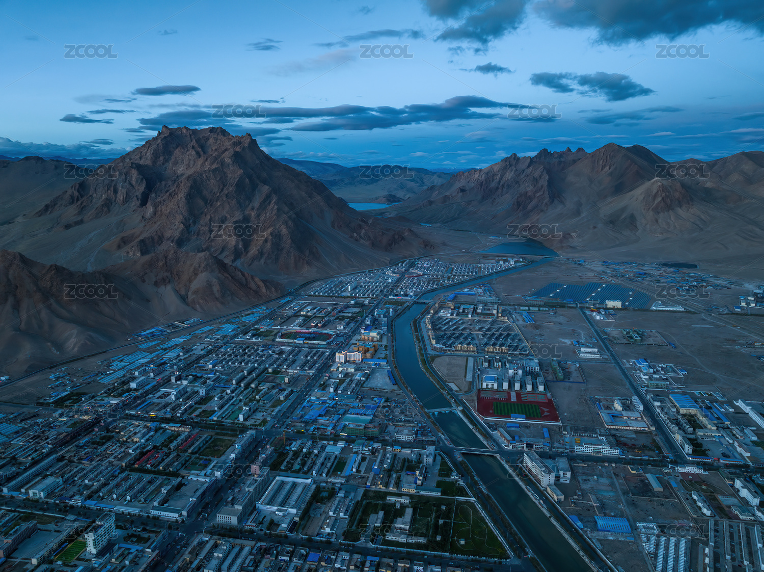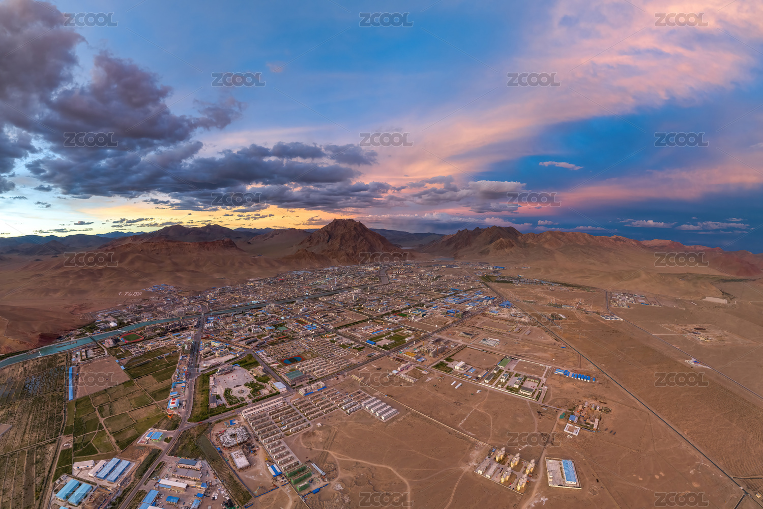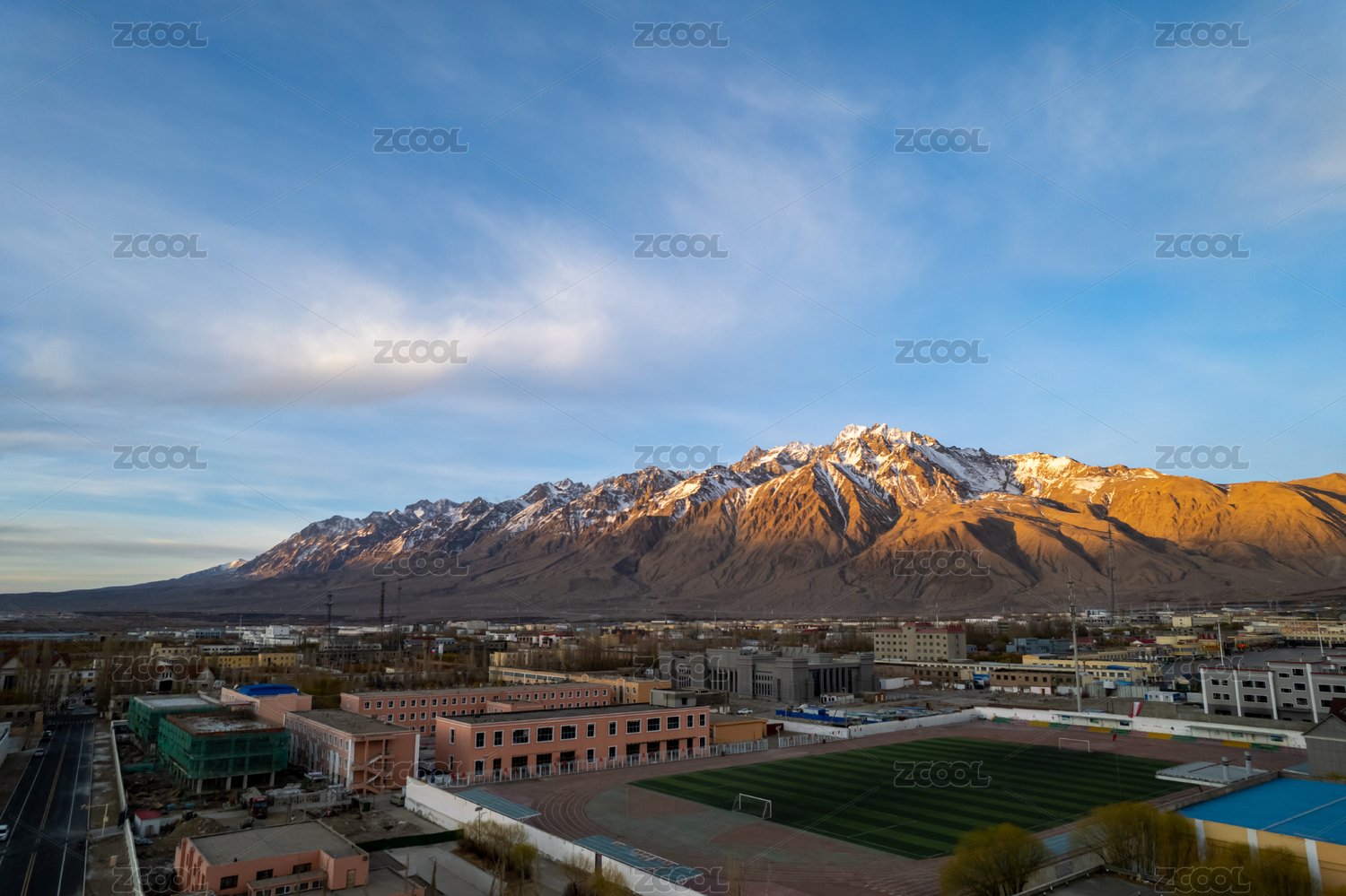 中国,新疆,喀什,塔什库尔干县,日出,山,城镇,清晨,航拍