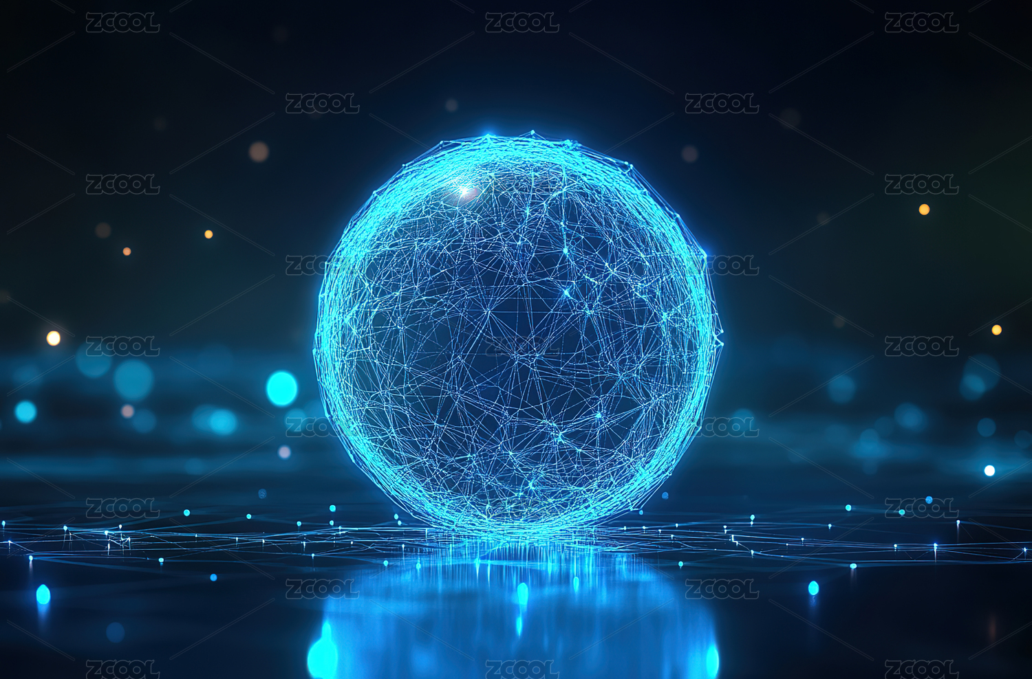 蓝色发光的网络球体