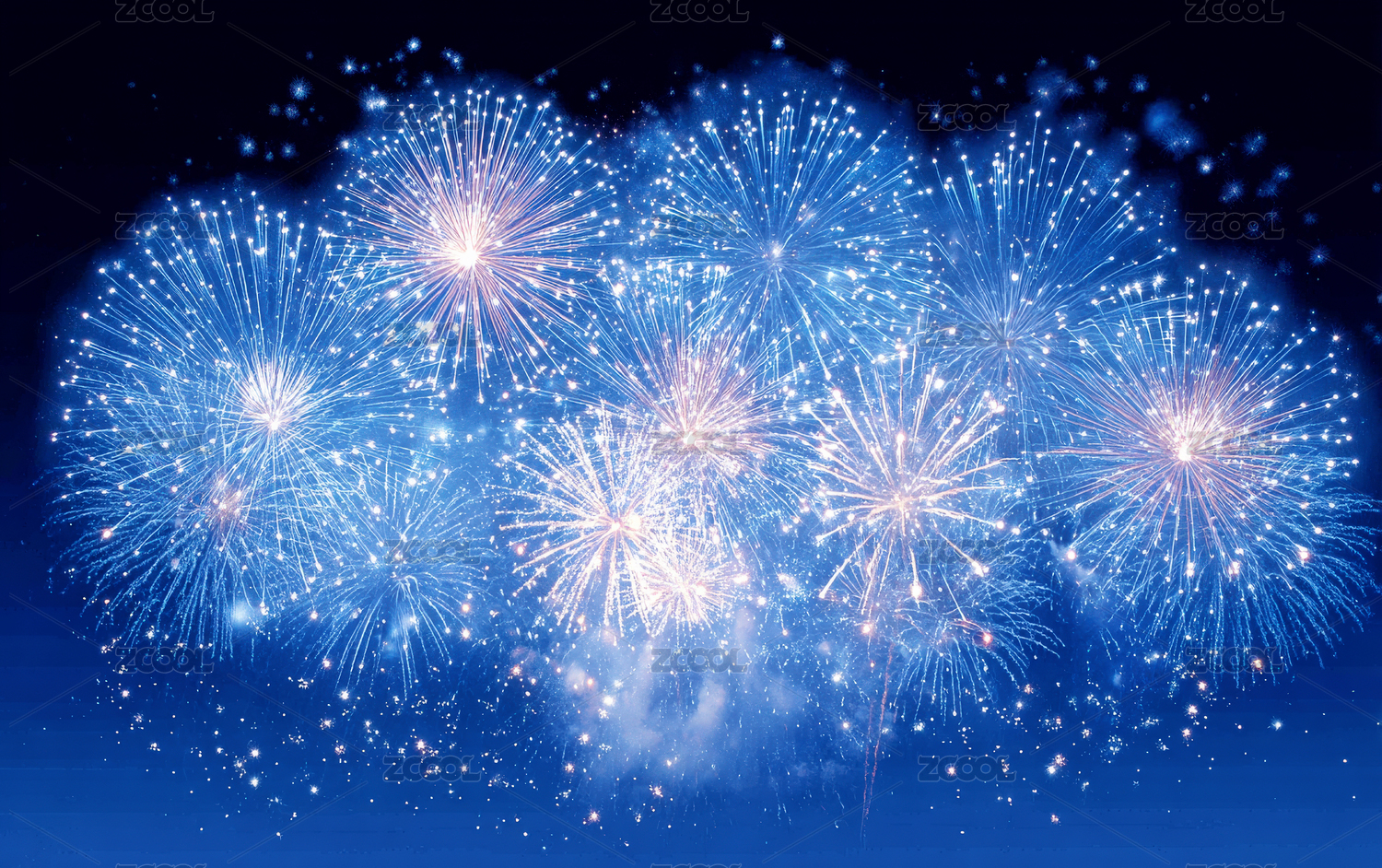 夜空中绚烂的蓝色烟花