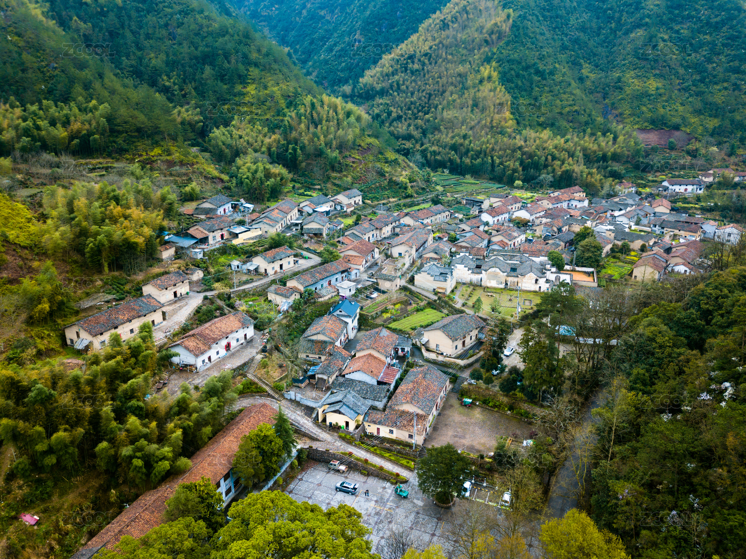 航拍浙江杭州临安区龙门秘境石门村山间村落
