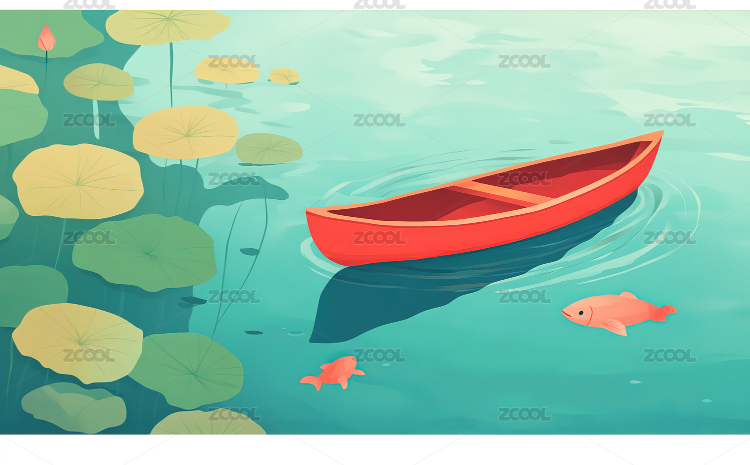 插画,肖像,荷花,船,自然,夏天,节日,旅行,夏至,二十四节气
