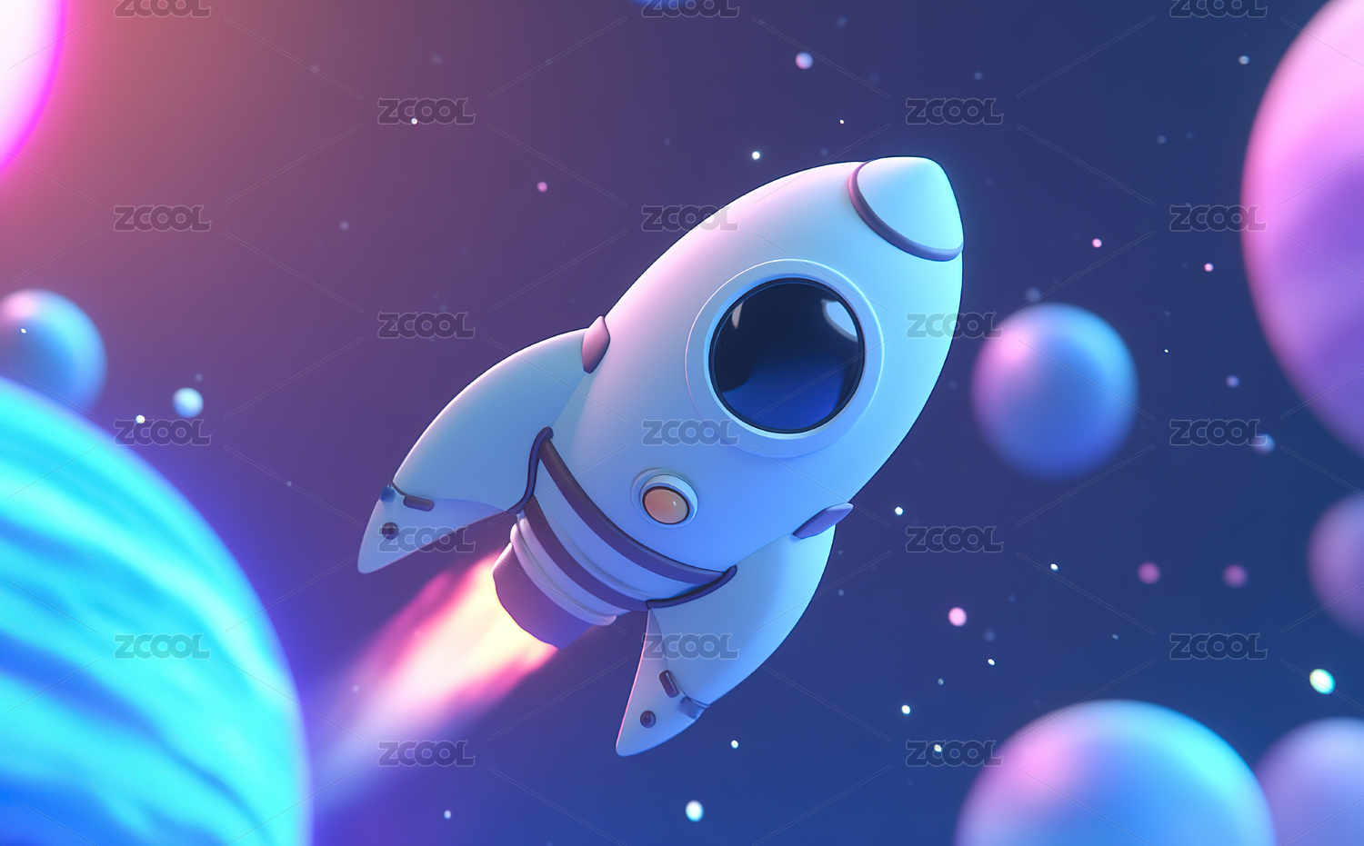 3D卡通火箭飞向太空创意场景