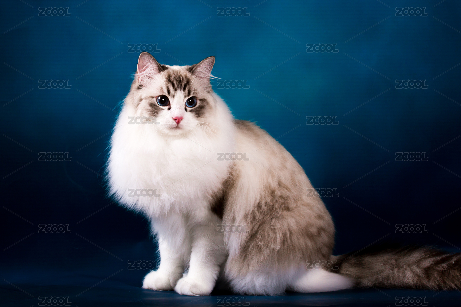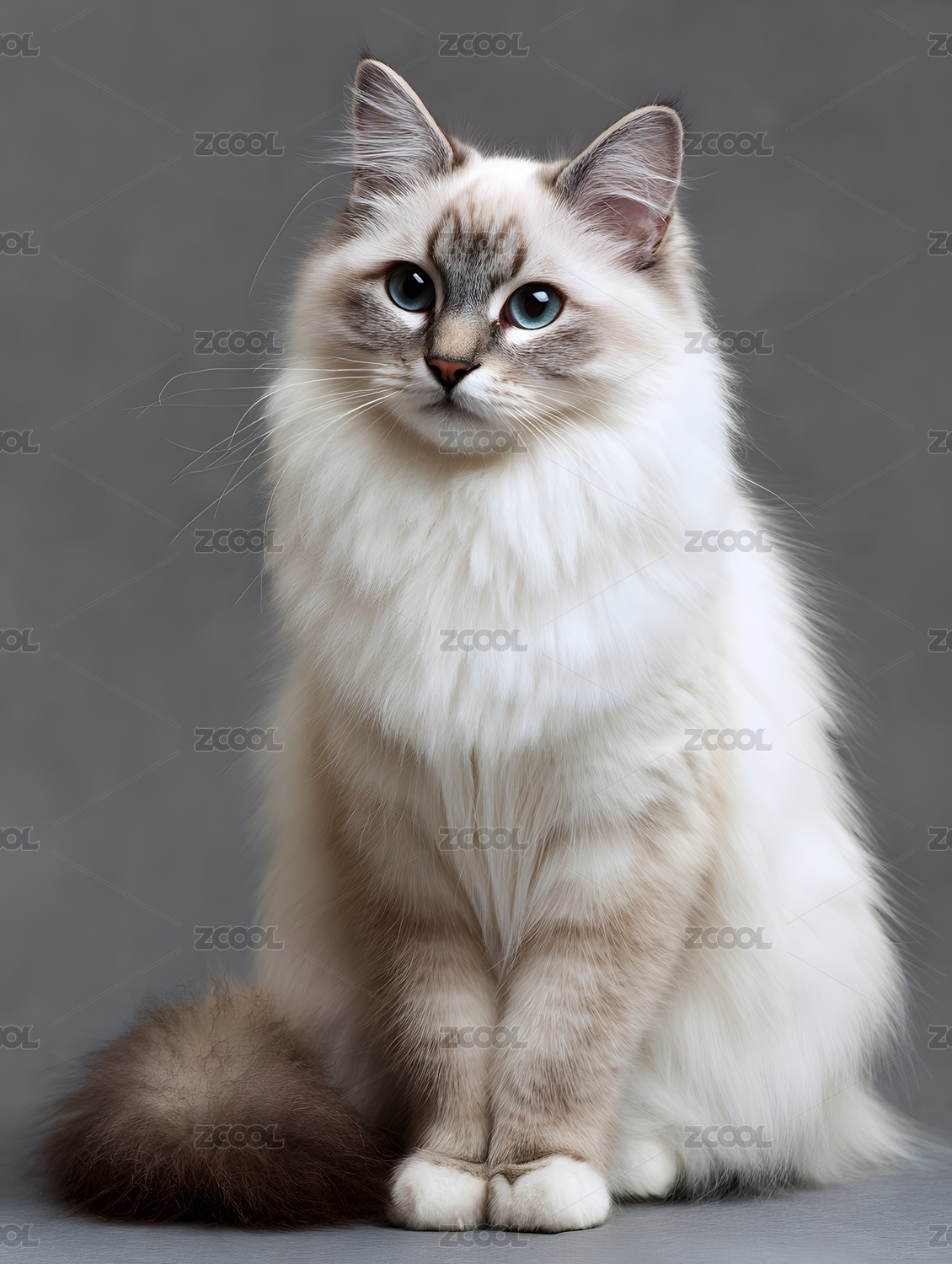 布偶猫肖像蓬松长毛蓝眼灰白摄影