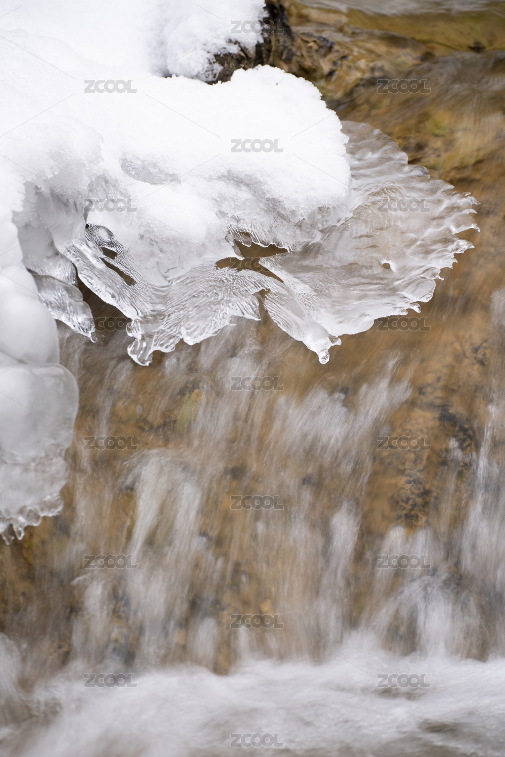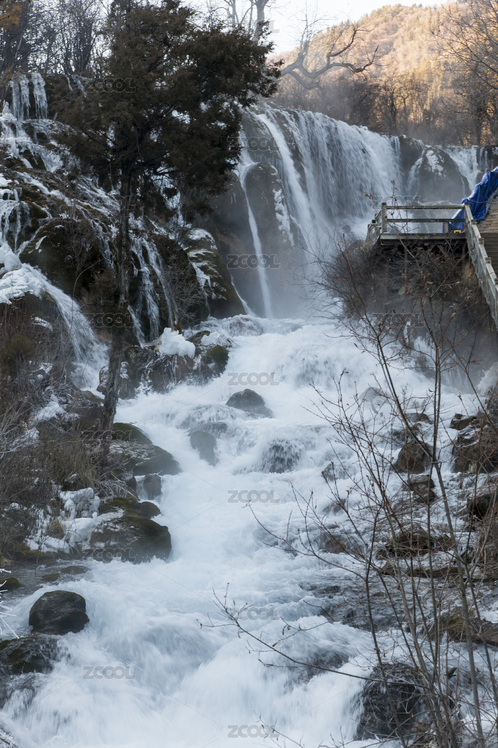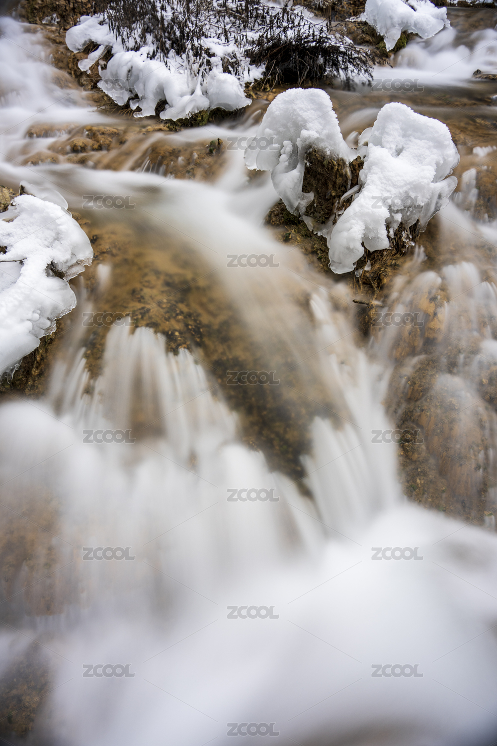 中国四川阿坝九寨沟珍珠滩瀑布融雪景观