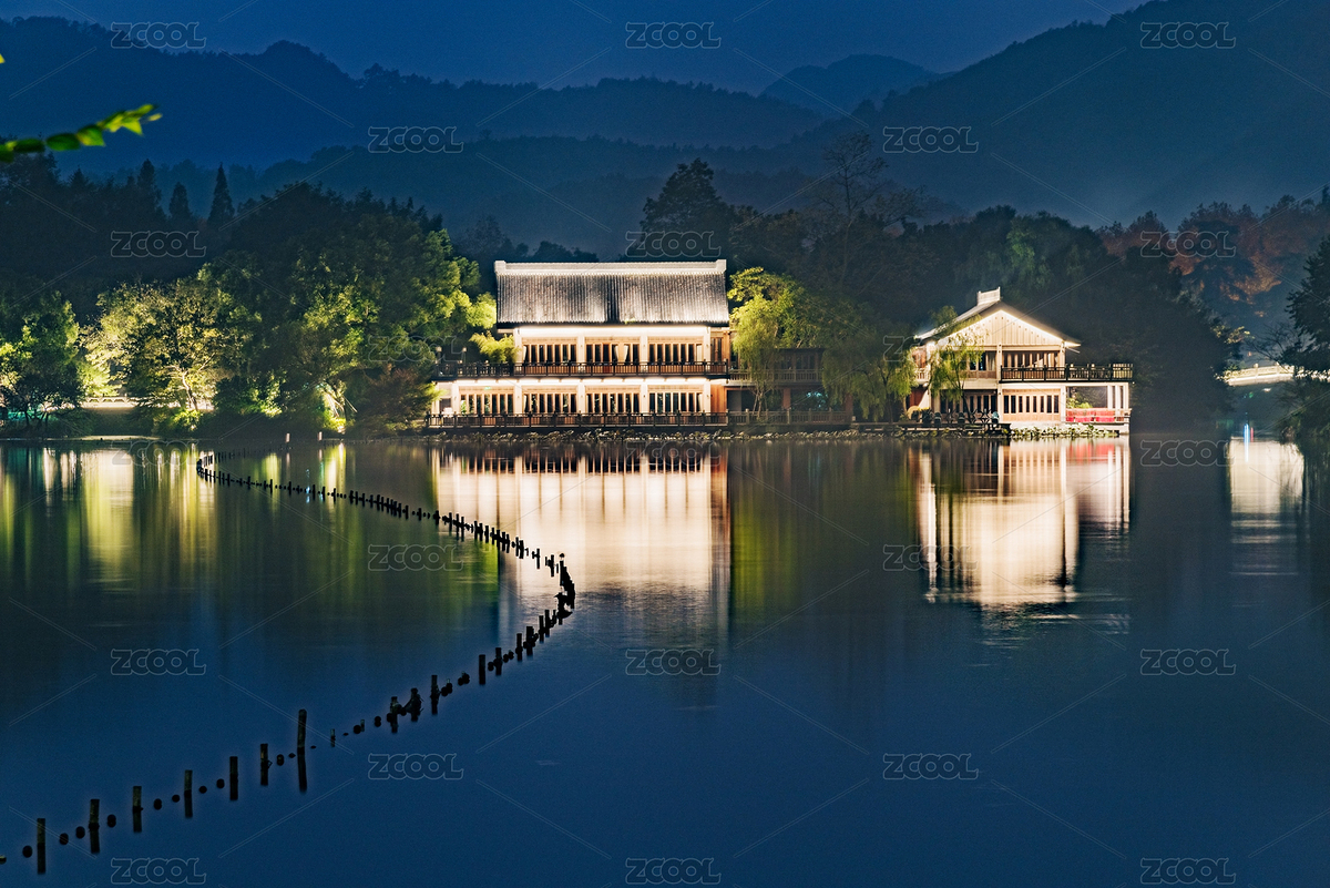 彩色图片,小南湖,杭州,灯光,自然,夜景,自然风景,湖泊,建筑,西湖