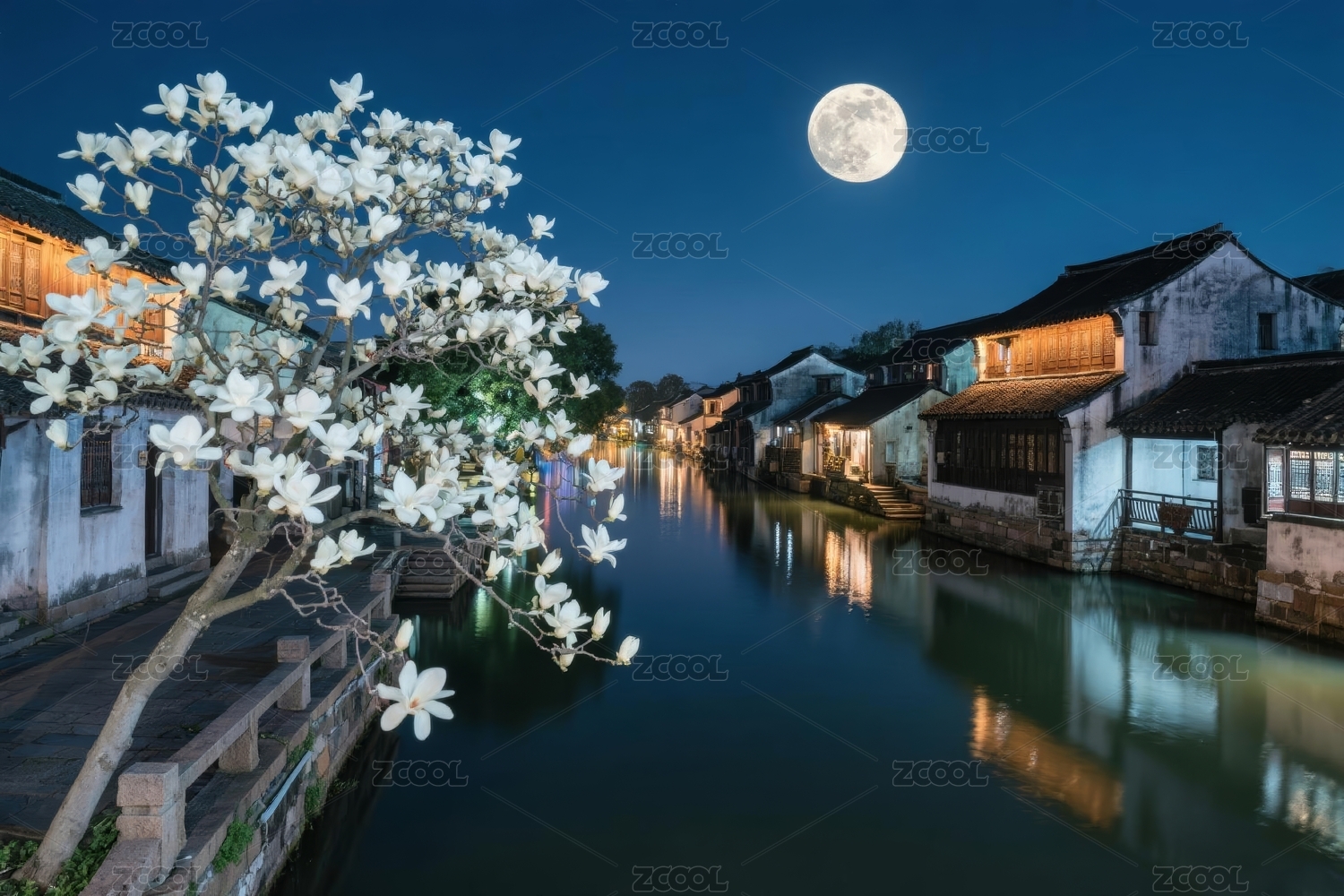 江南水乡月夜美景