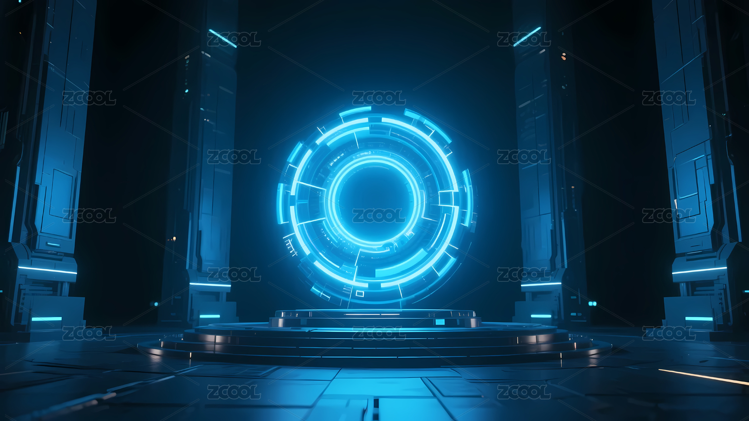 蓝色光环圆形平台