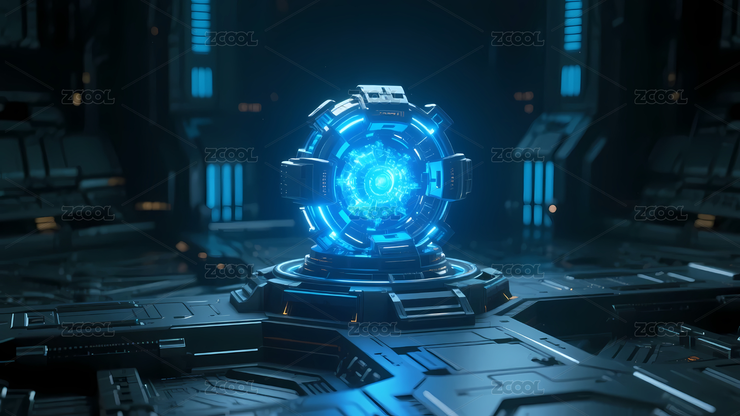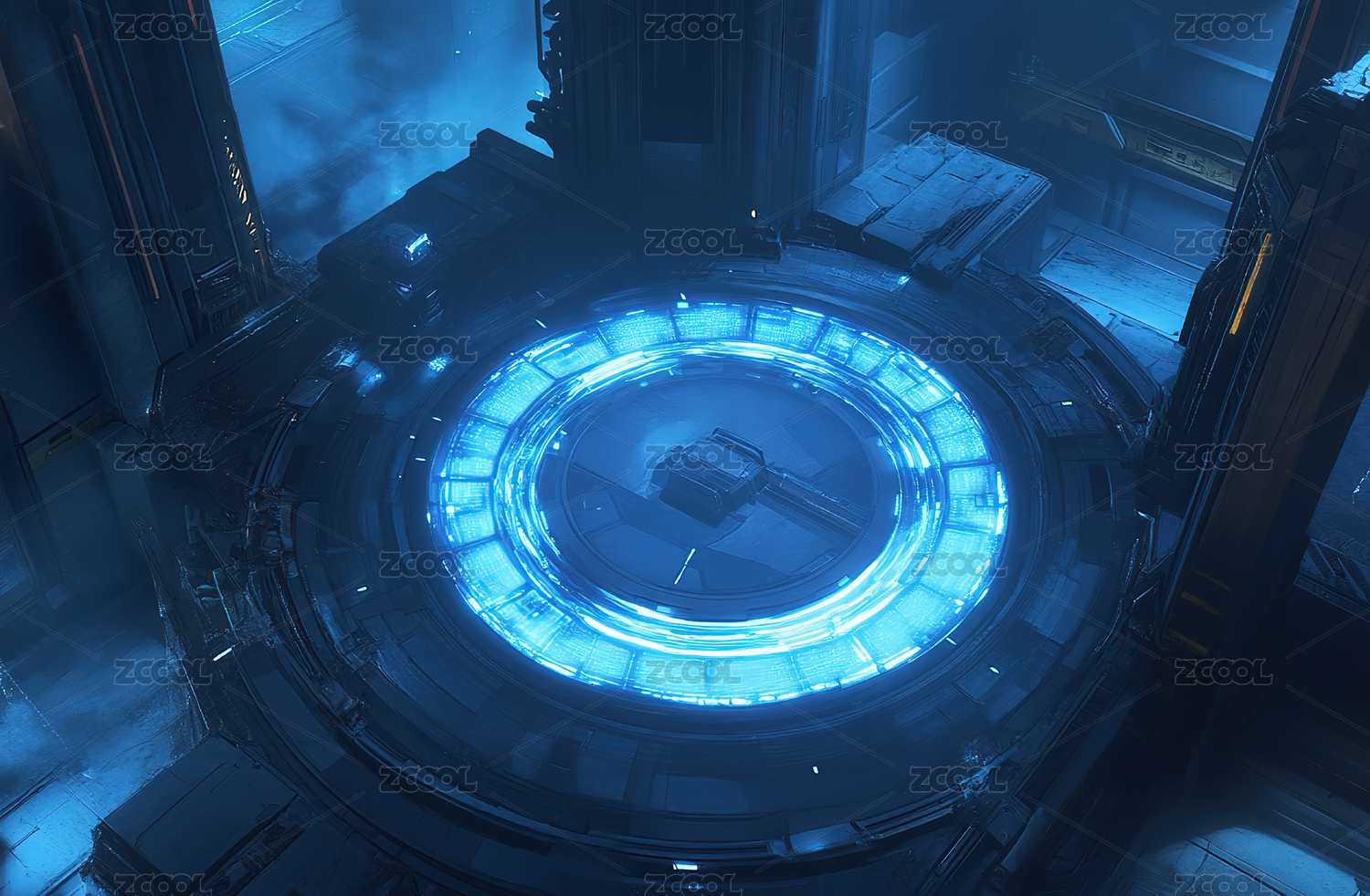 蓝光环圆形科幻装置