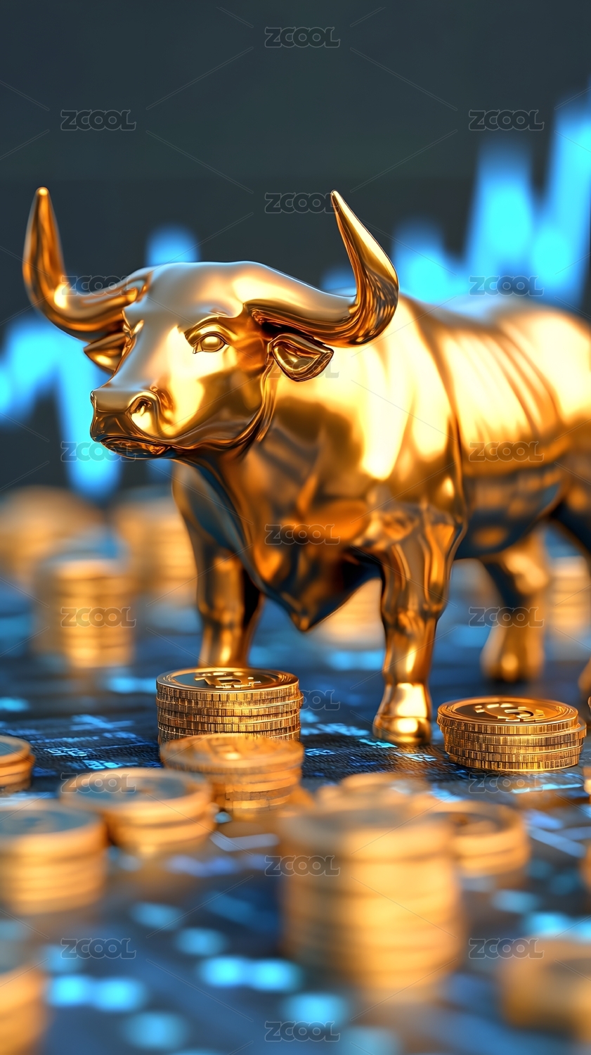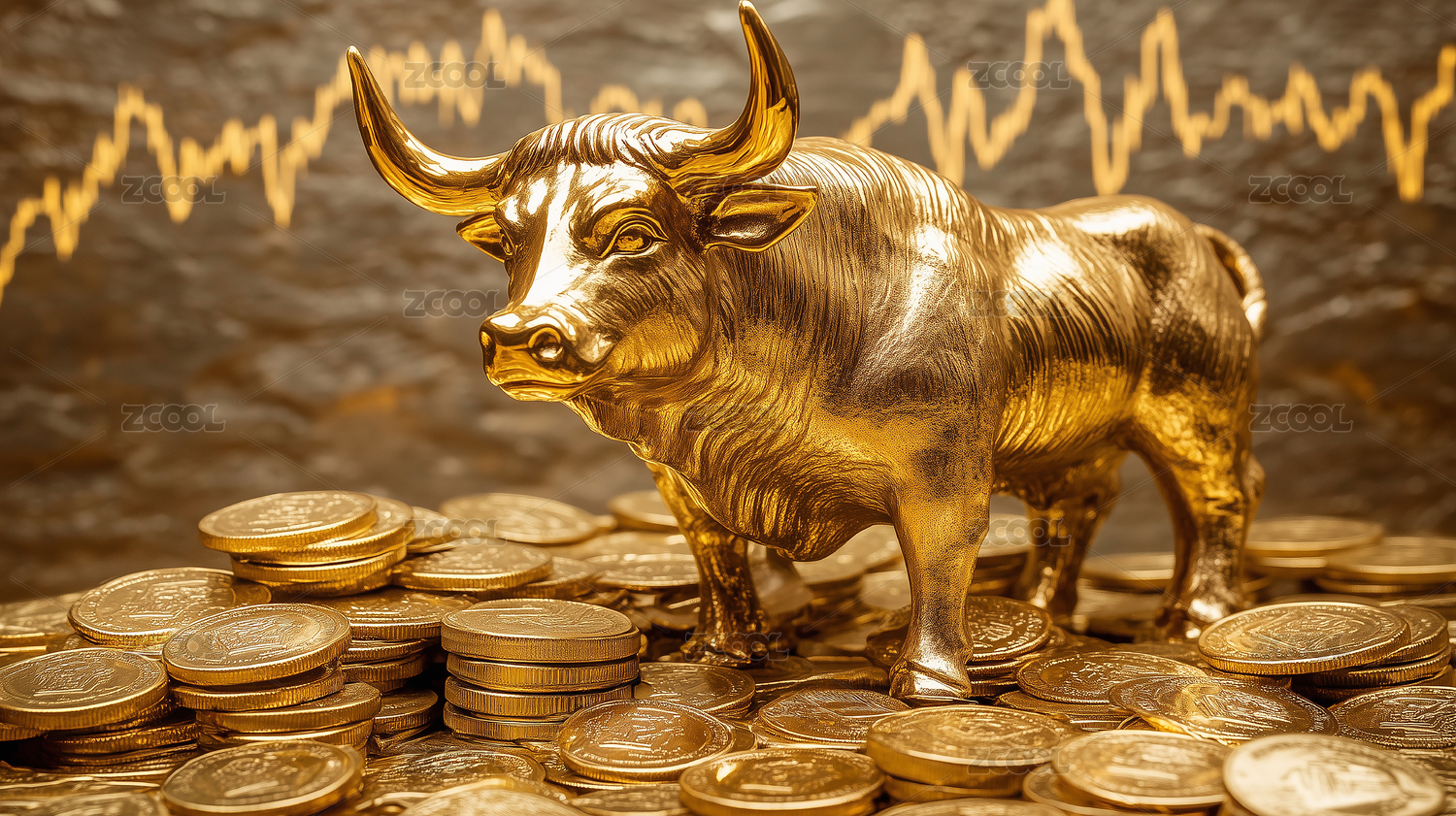 牛市股票股价上涨金牛雕塑股市吉祥物插图