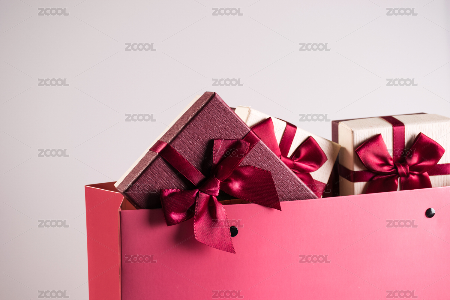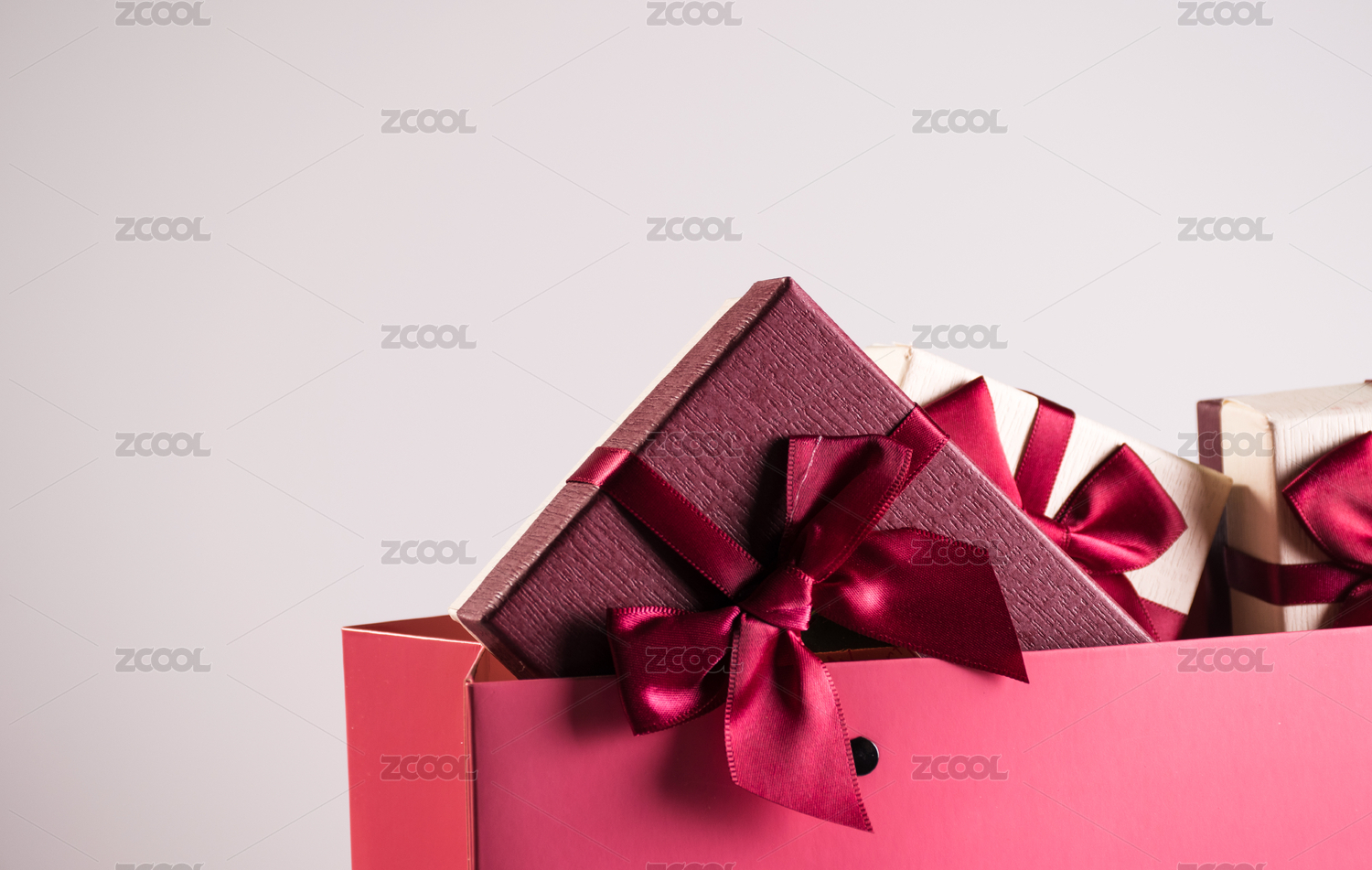 几个堆叠的大红色带有蝴蝶结的礼物盒子