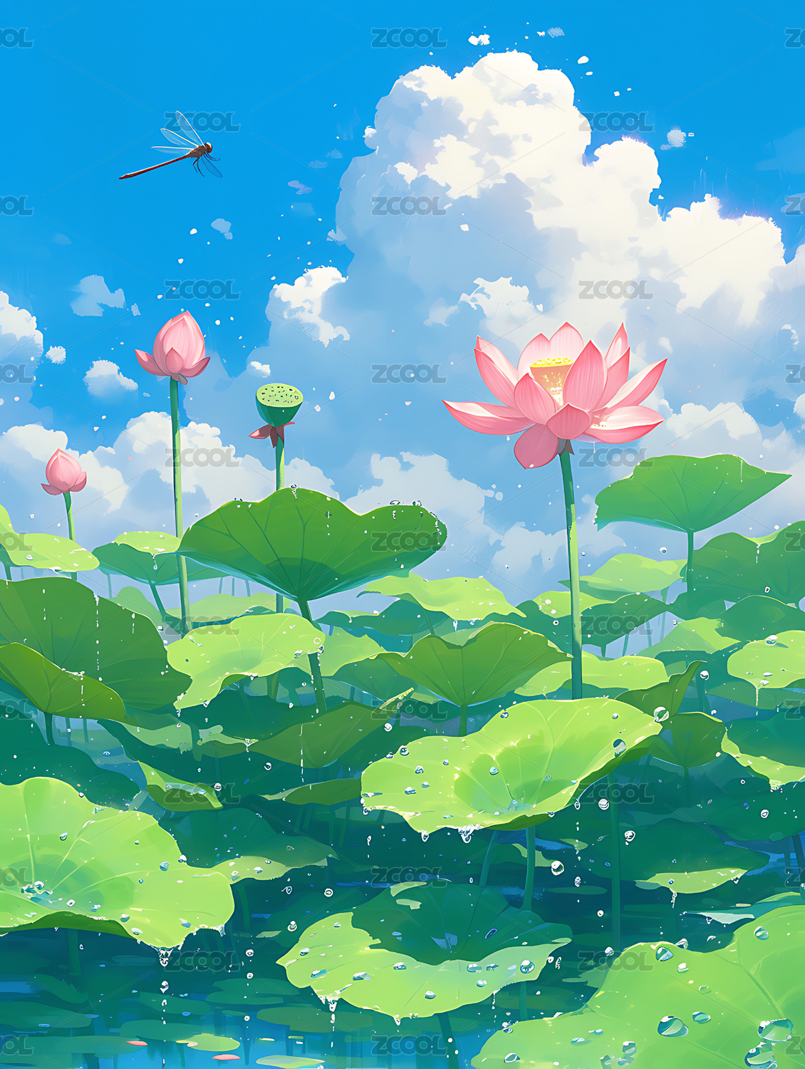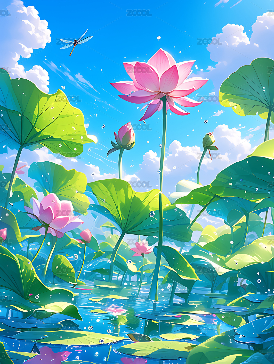 莲花,池塘,树木,阳光,自然,绿色,花朵,水面