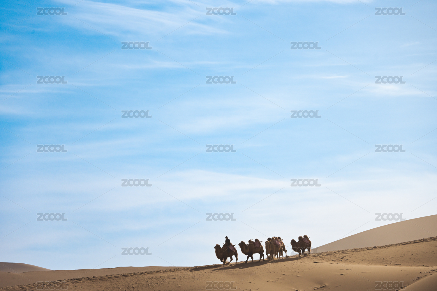 中国甘肃酒泉敦煌鸣山沙景区骆驼队