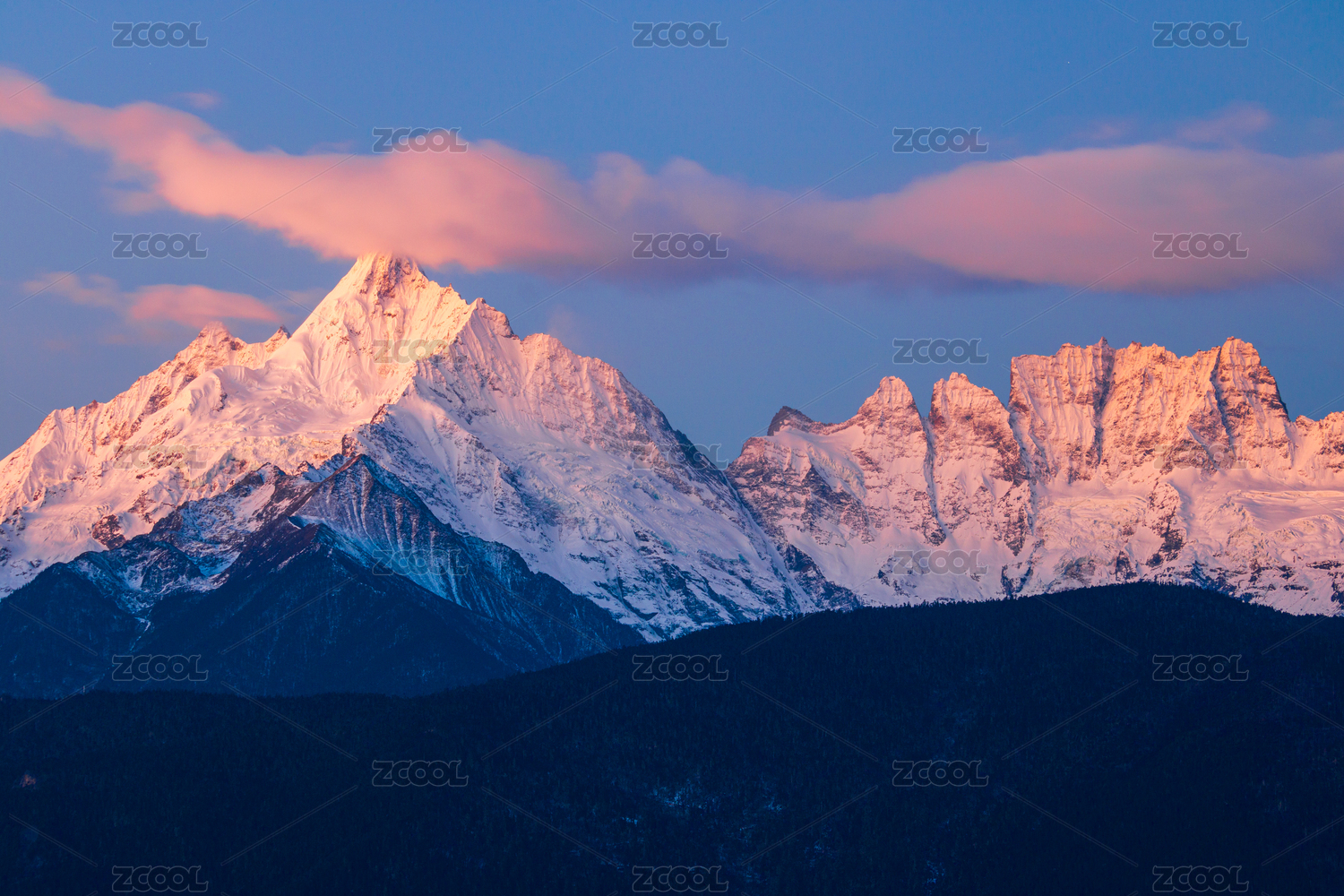 中国云南省香格里拉梅里雪山日照金山自然风光