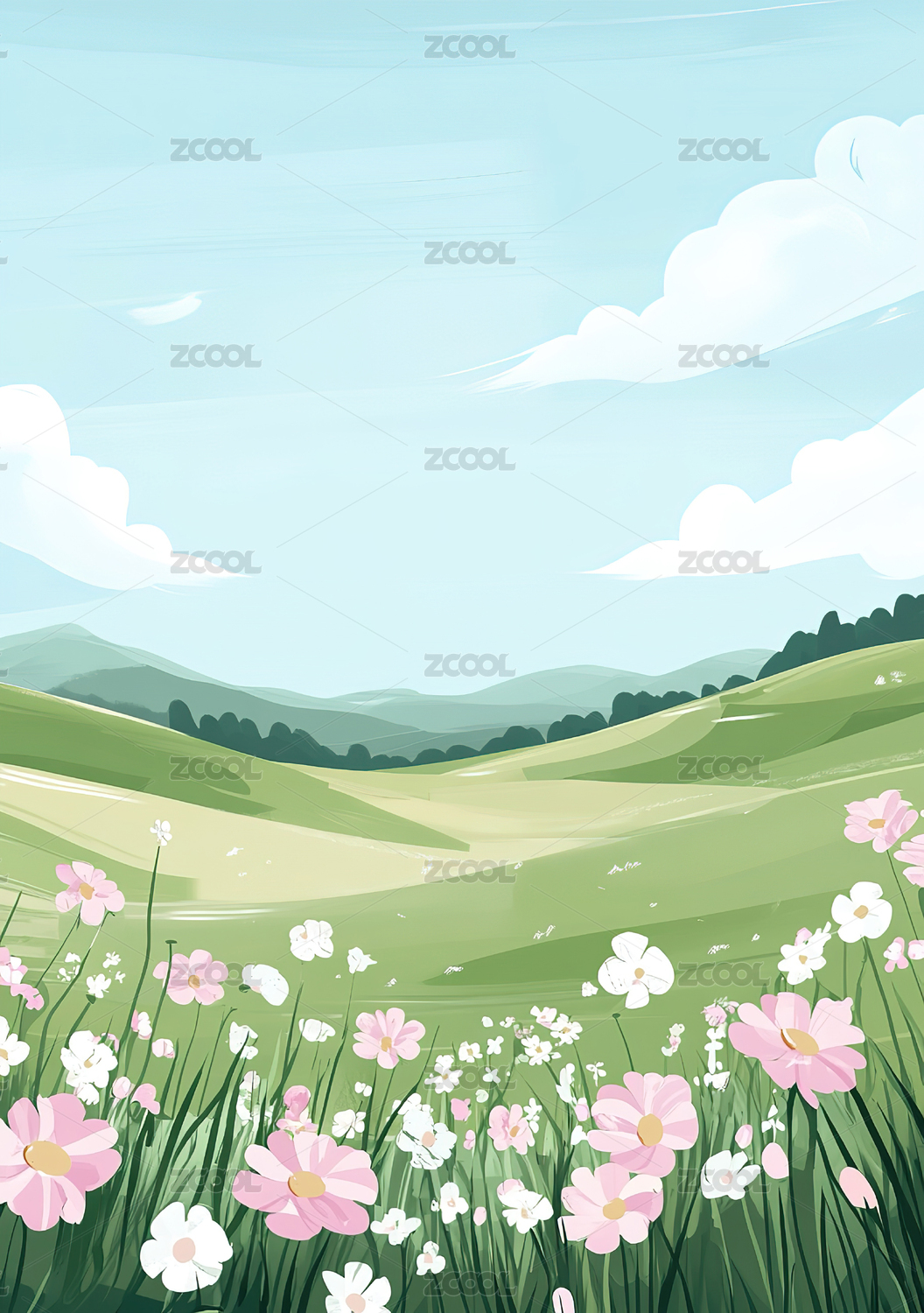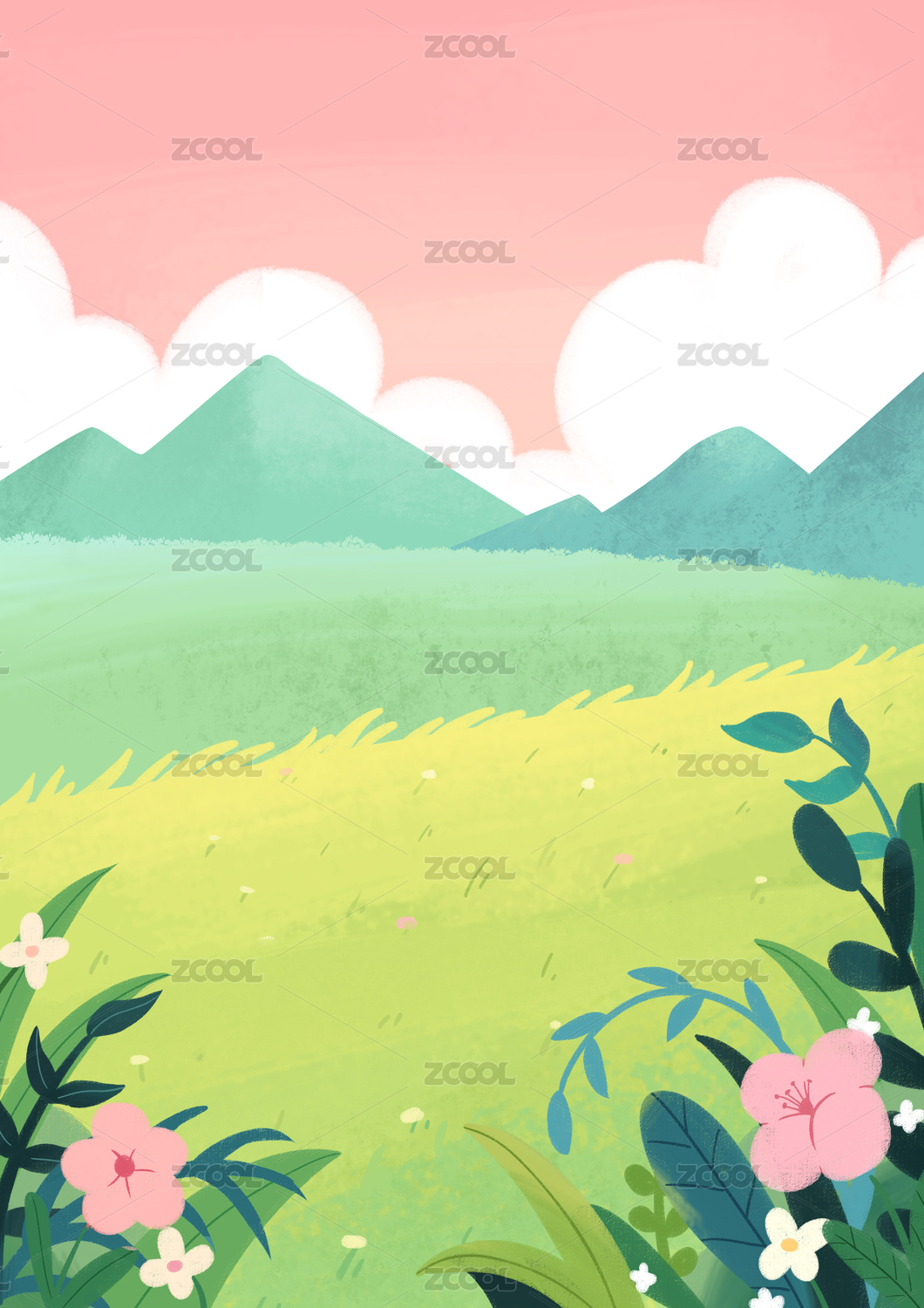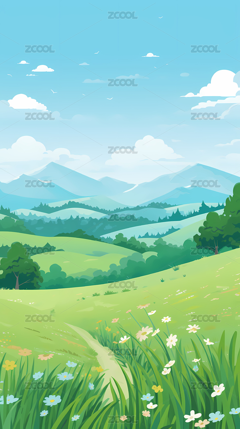 插图,草地,森林,远山,风格,户外,自然景观,山脉,蓝天,白云