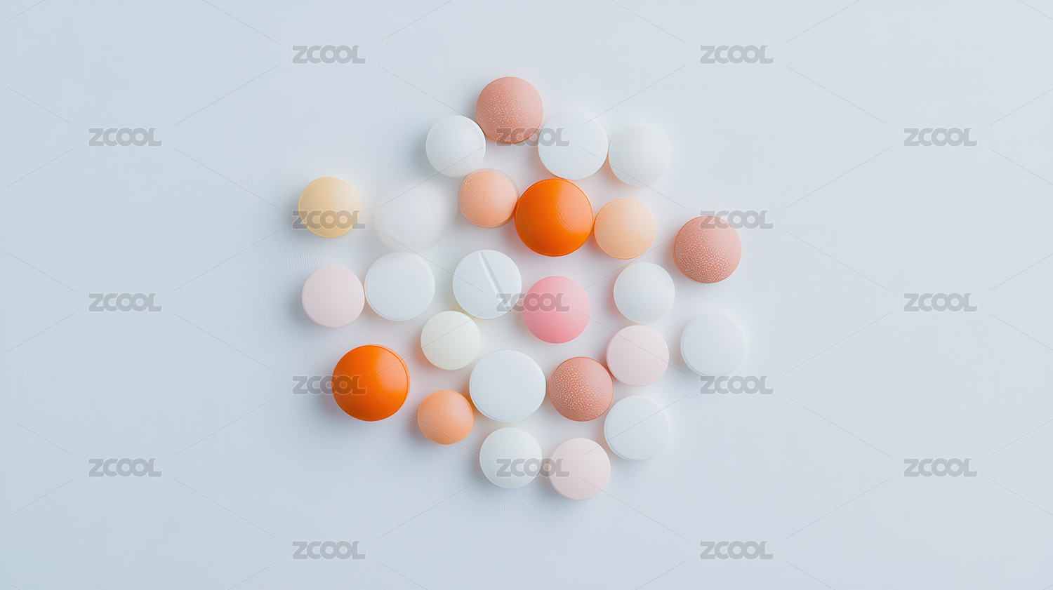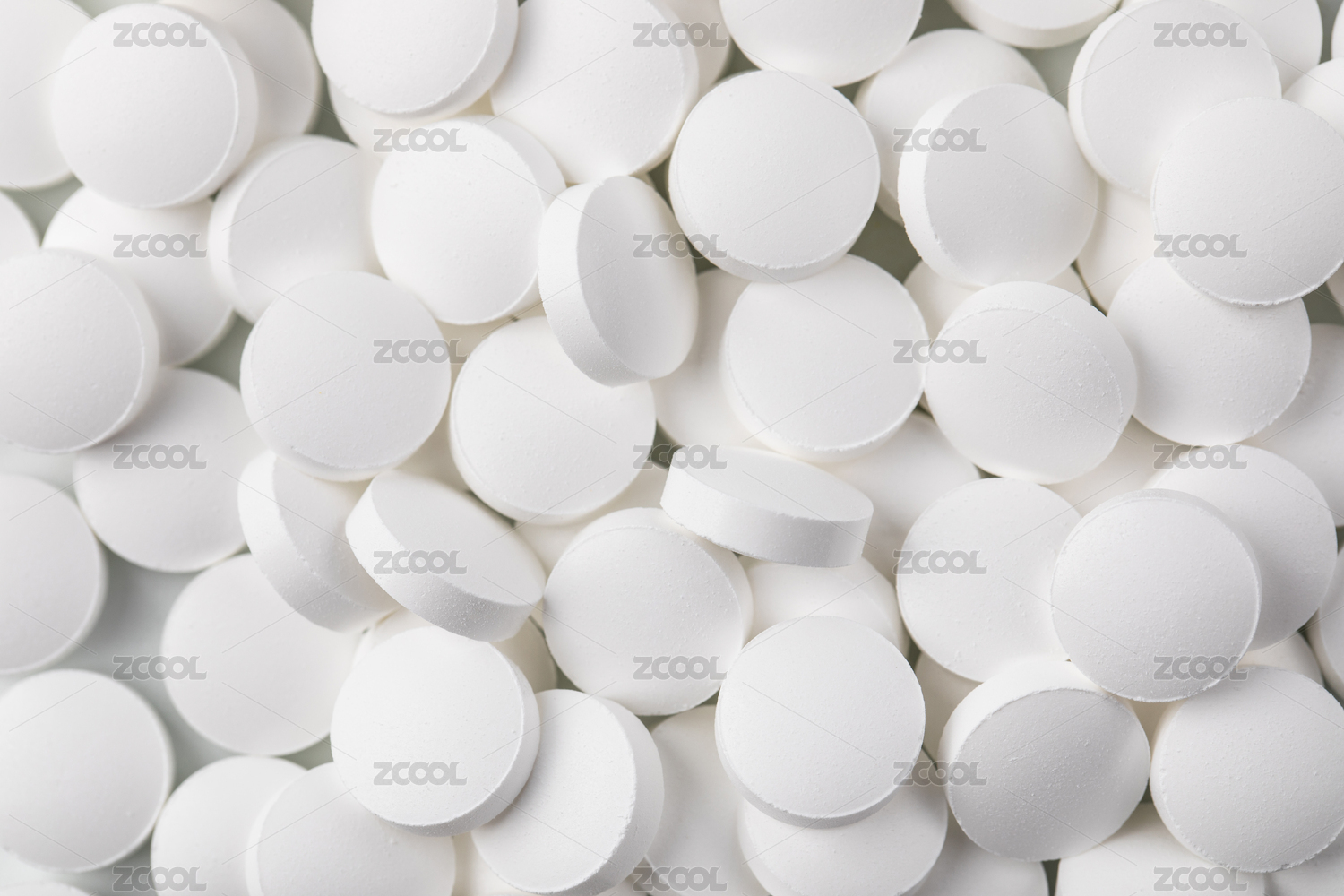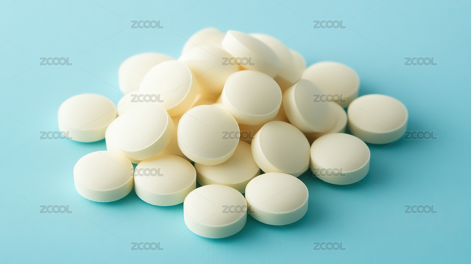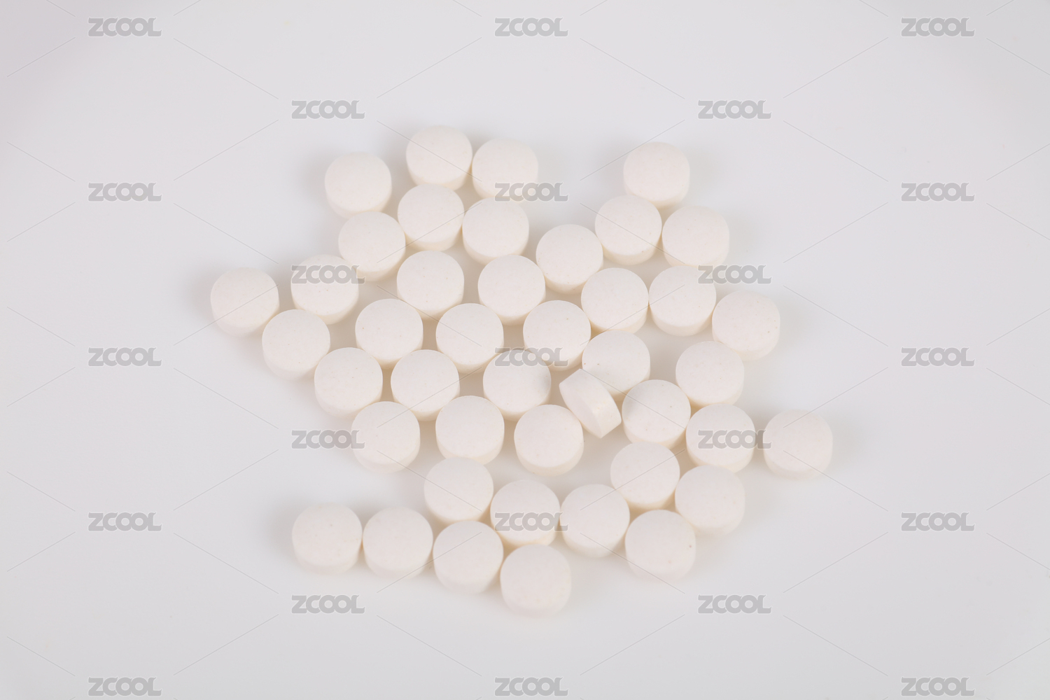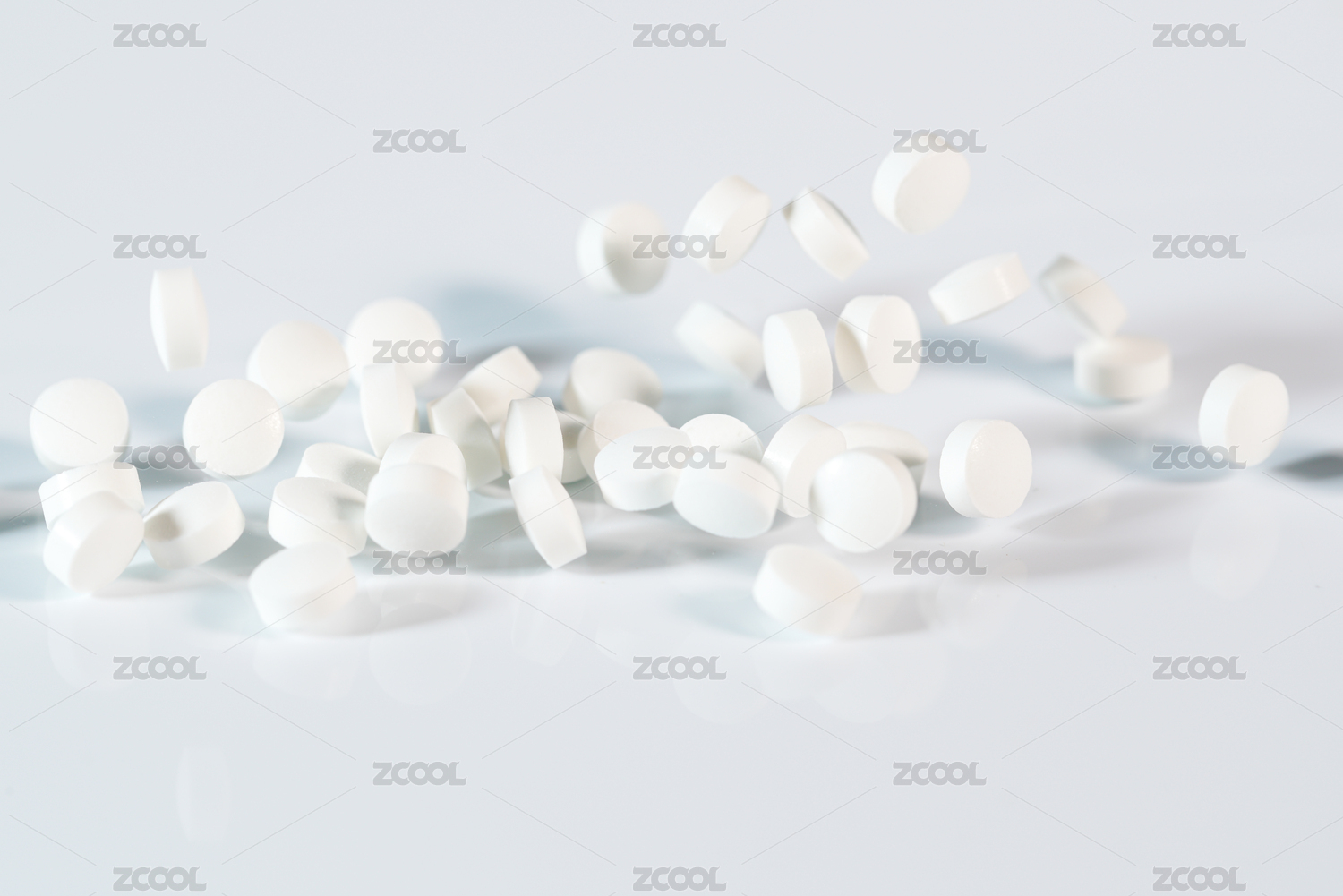 白色维生素药品掉落白色背景瞬间高速抓拍