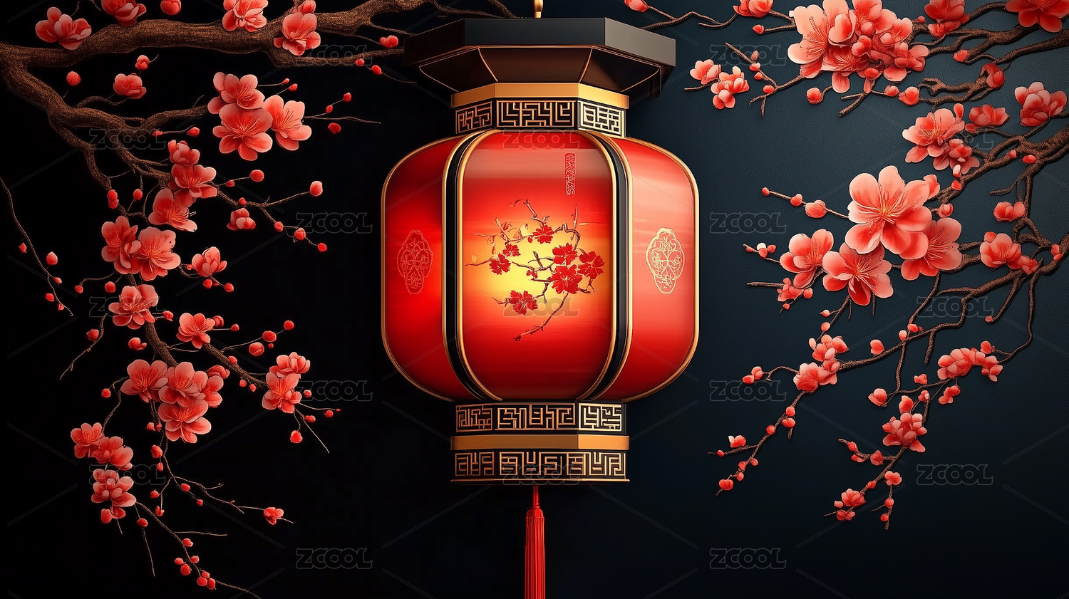 中国新年红灯笼樱花