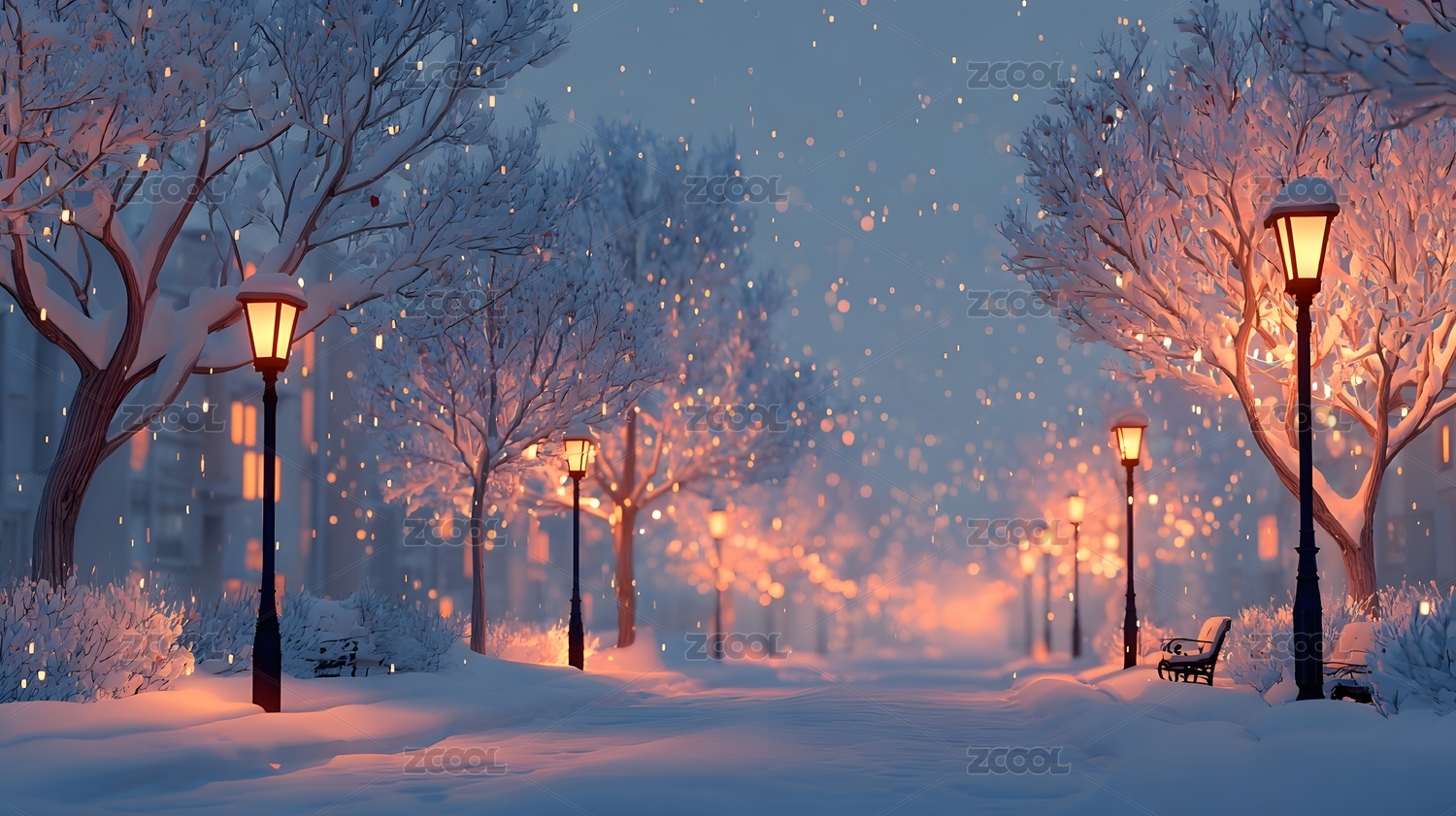 冬季,挂着,灯笼,雪树,雪景,雪,雪地,唯美,冬天,景色