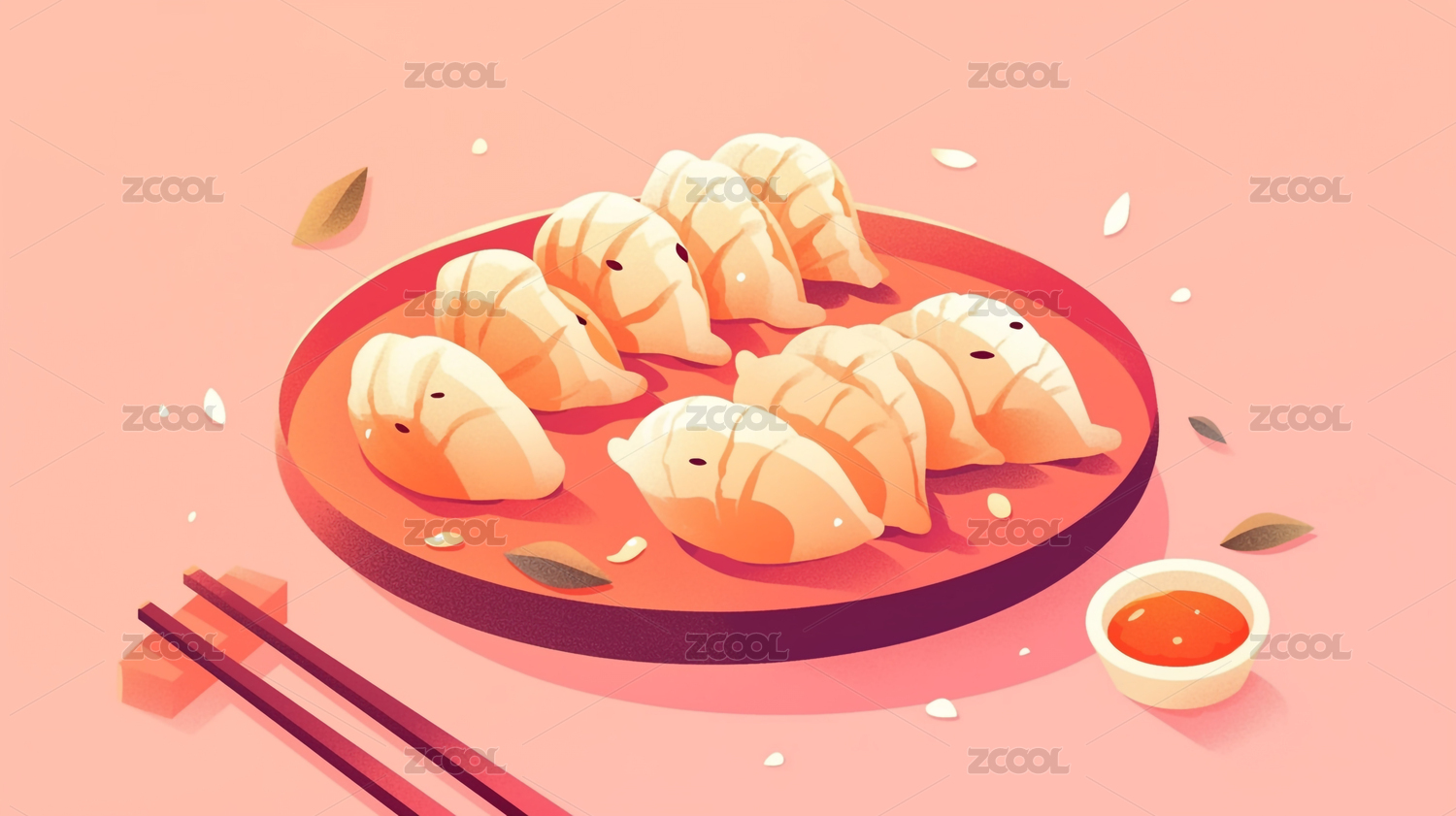 精美饺子搭配筷子的美食图