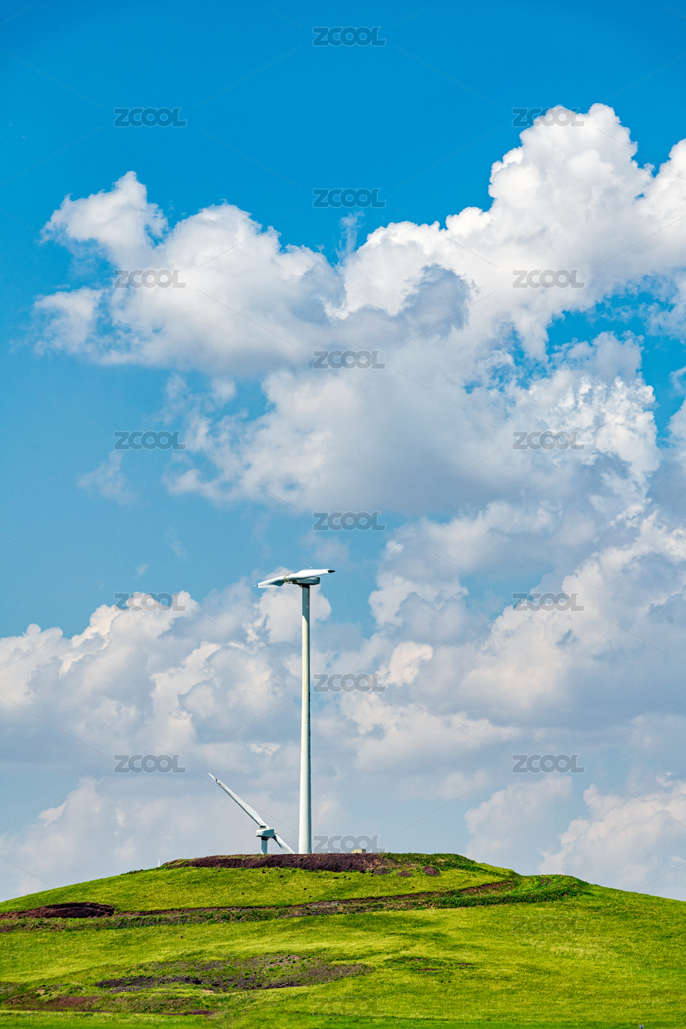 蓝天白云下的风力发电机组