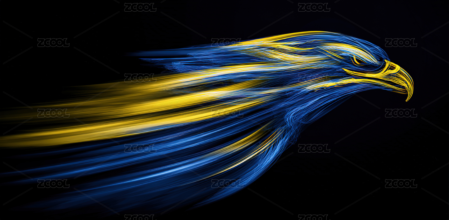 蓝黄流线鹰头艺术图