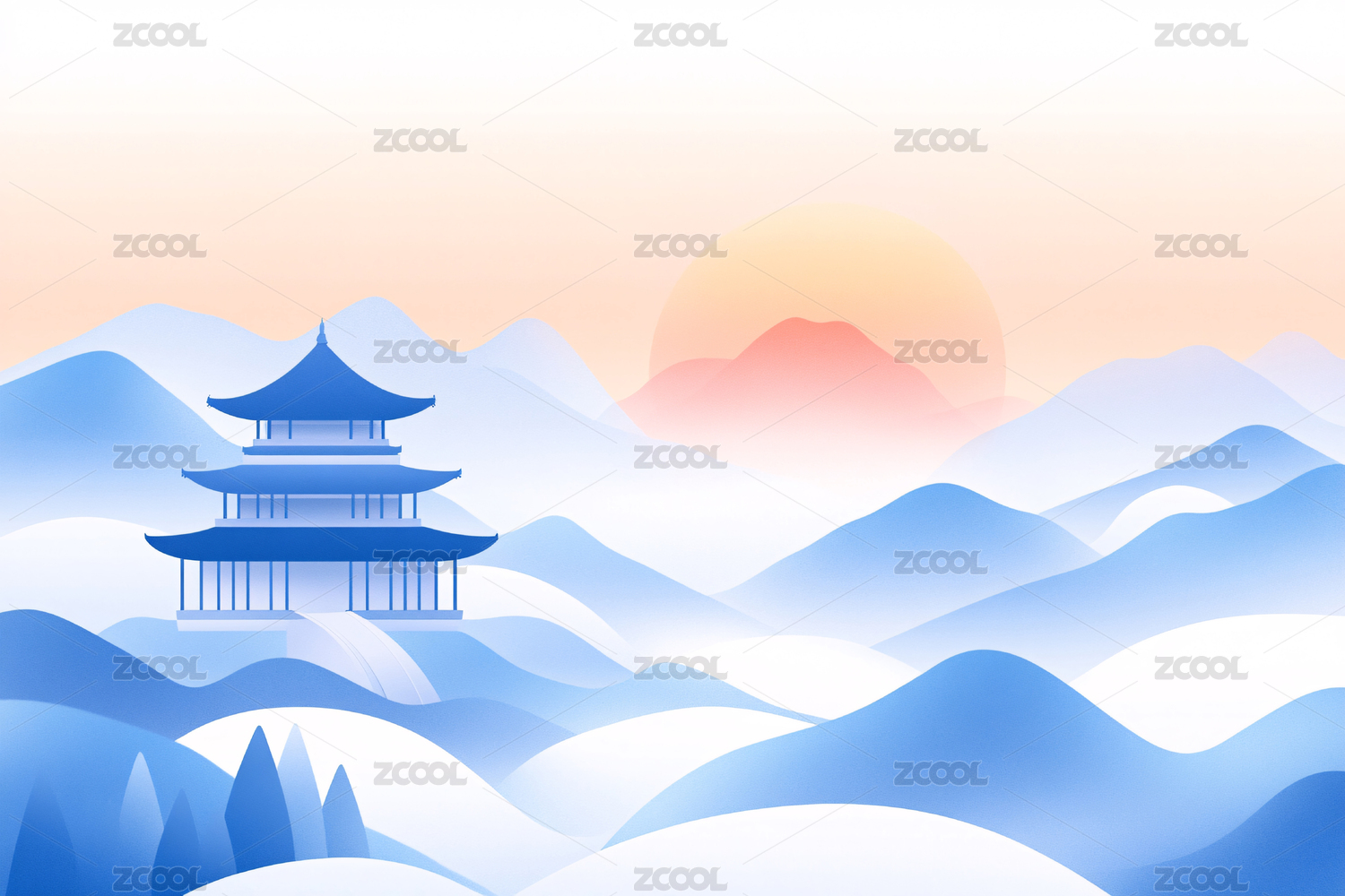 中国风古楼建筑传统国风古建筑国潮插画背景